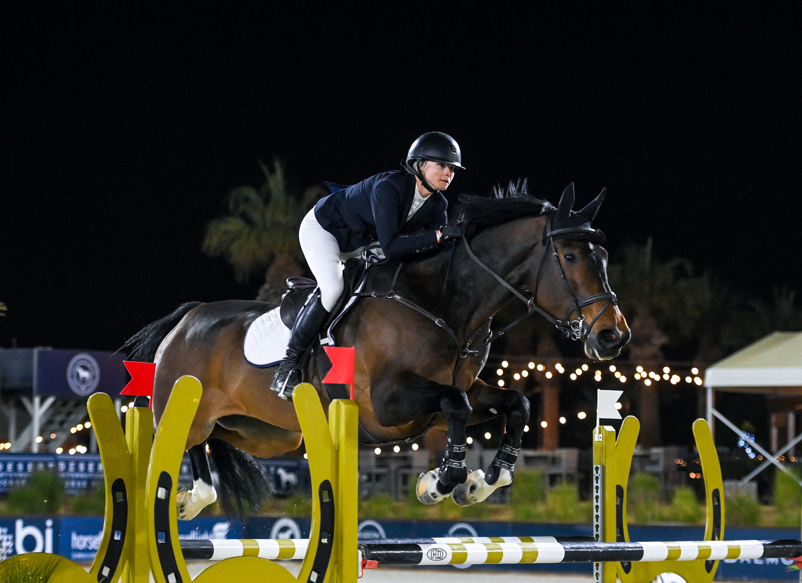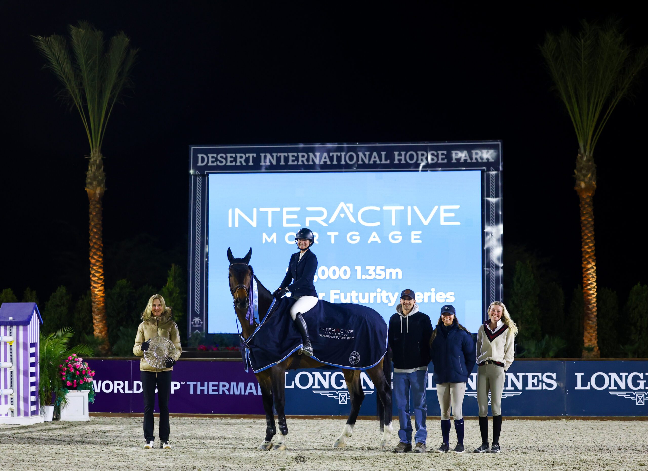 Thermal, CA – January 24, 2025 – Friday night’s $10,000 Interactive Mortgage 10 & Under Futurity Series gave 42 young horses the opportunity to shine under the lights at the Desert International Horse Park, but none shone brighter than Source Code. Jessica Gleason rode the 8-year-old Dutch Warmblood to victory by a margin of more than 2.5 seconds on January 24, during Desert Circuit 3, presented by American Wild Horse Conservation.