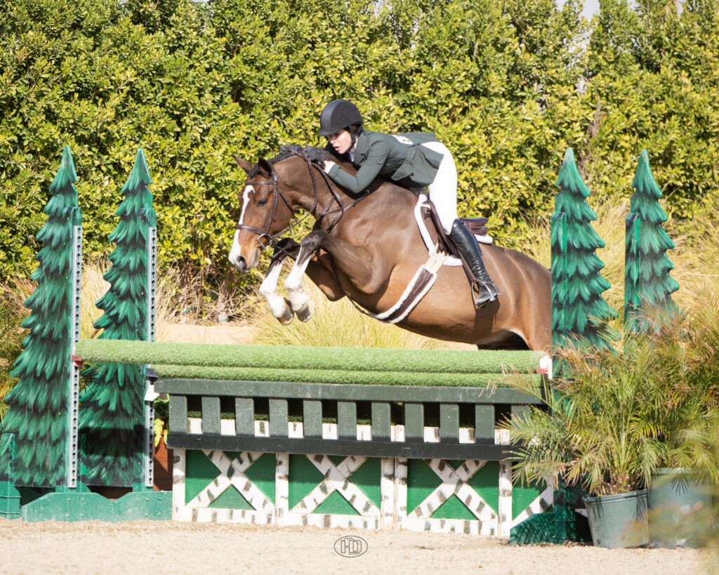 The horse belongs to a client of Brown’s that left for college, so she took over the ride when the baby bird flew the nest, and it’s been a solid progression up to the higher fence heights, proving the mare has a bright future ahead of her. “She’s naturally really quick,” Brown continued. “She’s also careful so all I had to do was give her a decent ride and she’s going to jump clean.”