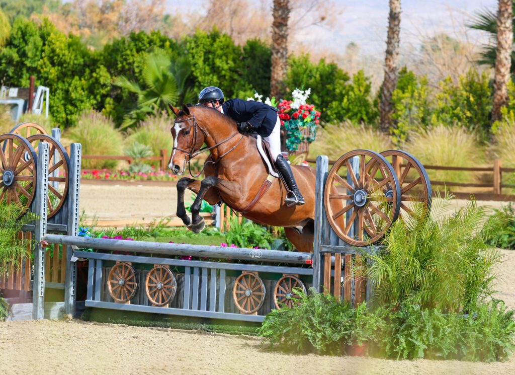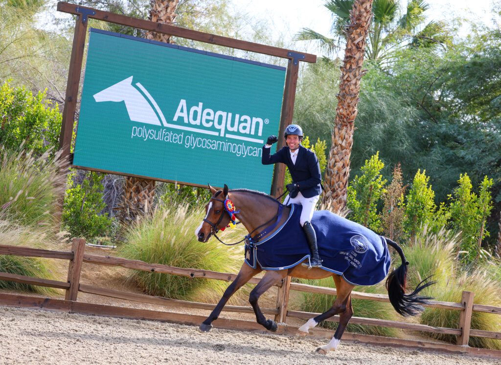 One year prior, Teddi Mellencamp’s mount Totally wasn’t even jumping around the .80m, and on Friday of Desert Circuit 2, presented by Adequan®, he took a major win in an international hunter derby.