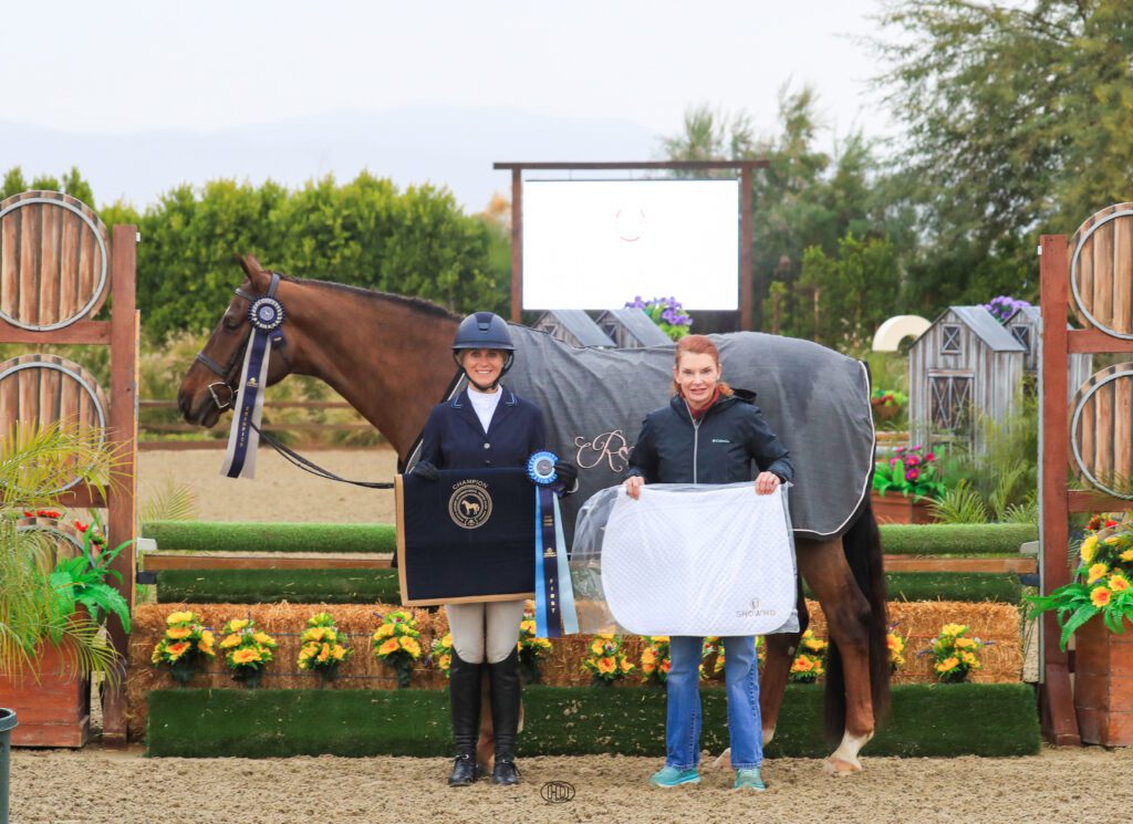 Allison La Joie and Santa Rosa Apolo in thier winning presentation, pictured with Chelsea Buttermore of Adequan®. Photo by High Desert Sport Photo