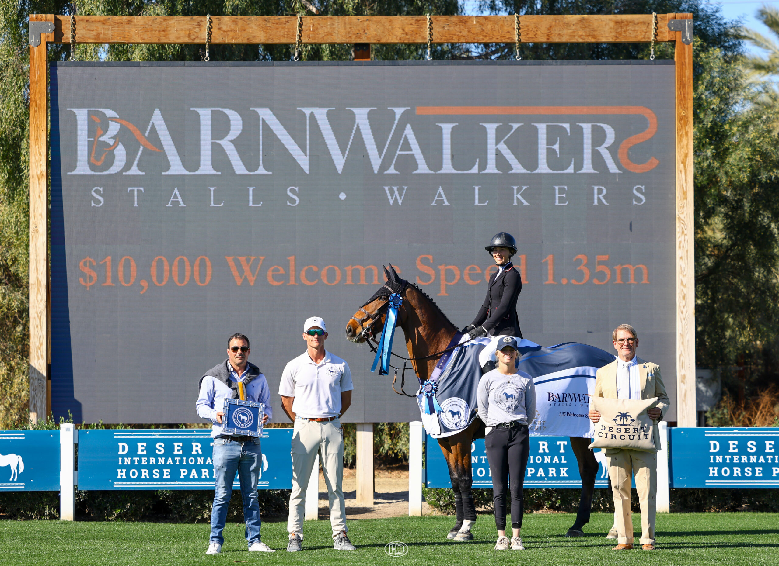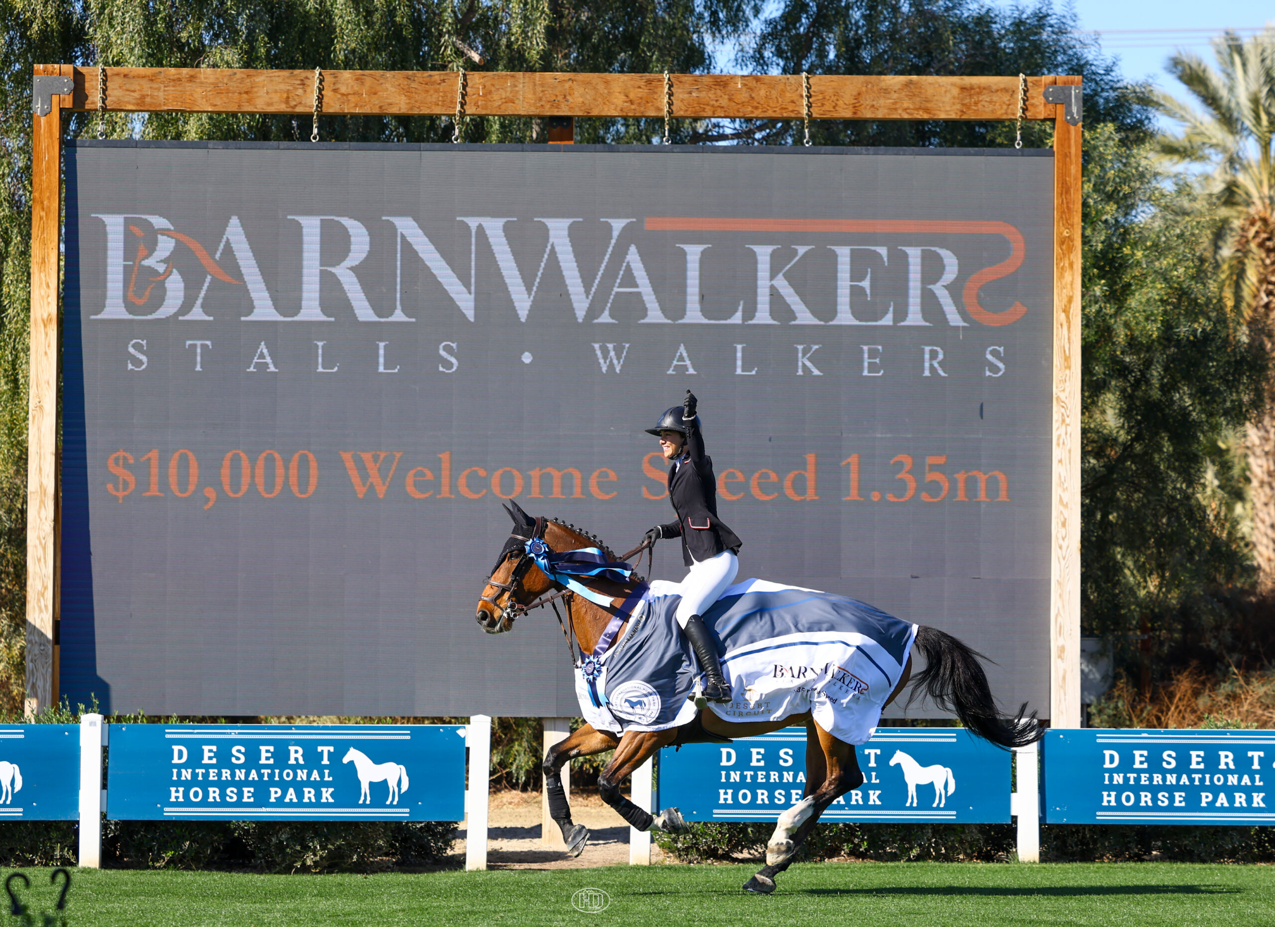 Thermal, CA – February 5, 2025 – Amanda Gomez and Charly-Ann are no strangers to winning in the Desert International Horse Park’s Grand Prix Arena, but on Wednesday, February 5, the pair proved that their speed stays consistent no matter the surface. With a time of 62.390 seconds, Gomez and Charly-Ann raced to victory in the $10,000 Barnwalkers Welcome Speed, held on the DIHP Grass Field at Desert Circuit 5, presented by Fobi.