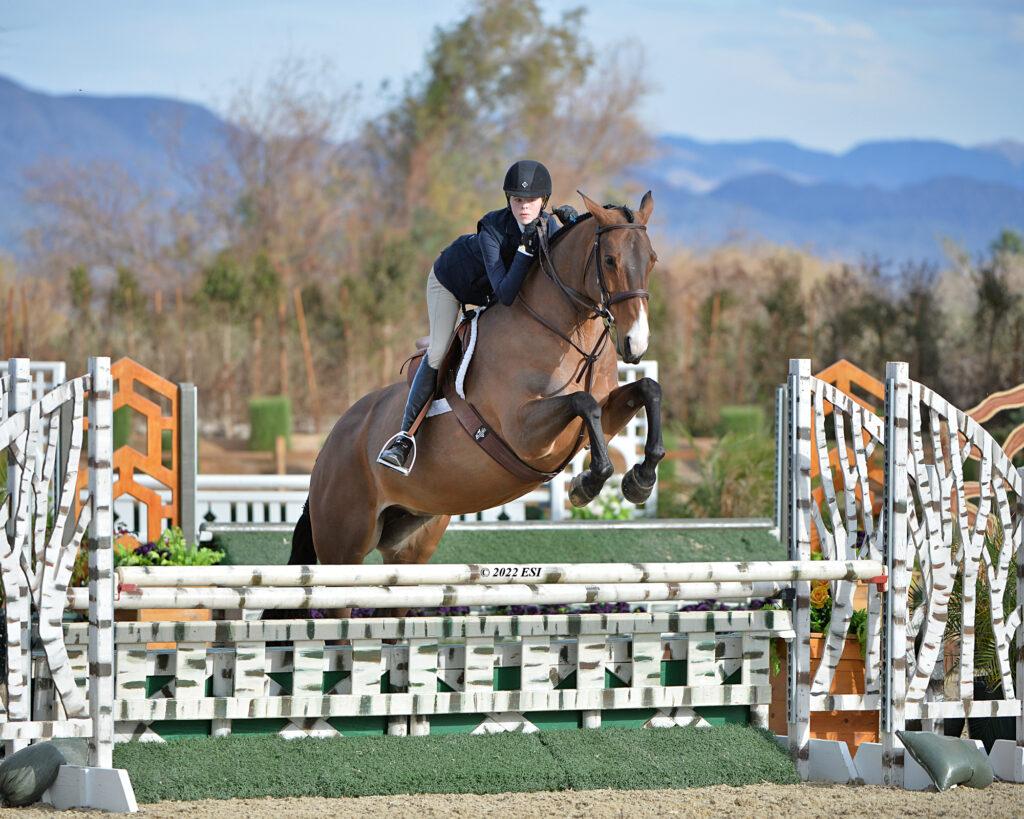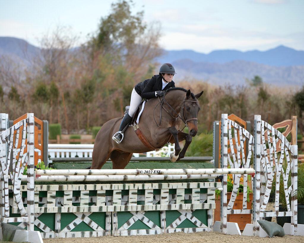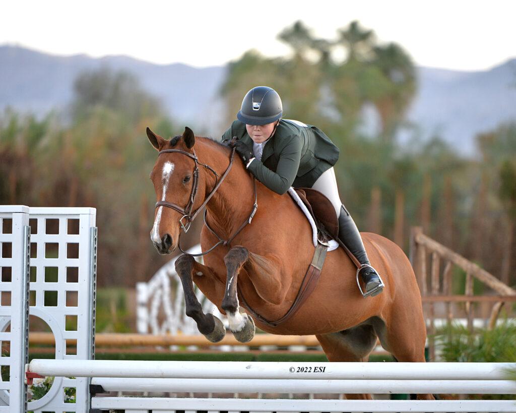 Thermal, Calif. – Jan. 22, 2022 – Saturday of Desert Circuit I welcomed all Junior Hunters back to Hunter 2 to show off their abilities and vie for championship honors and Junior Hunter Classic titles. Taking home blue ribbons in all four over fences classes and the championship honors in the Junior Hunter 16-17 3’6” , sponsored by Callidae, was Avery Rose Glynn with In Favor, owned by B R Farms LLC. Glynn also took home the reserve championship with Aventus, owned by Jennifer Cancellieri, winning the under saddle class and taking home notable ribbons over fences.