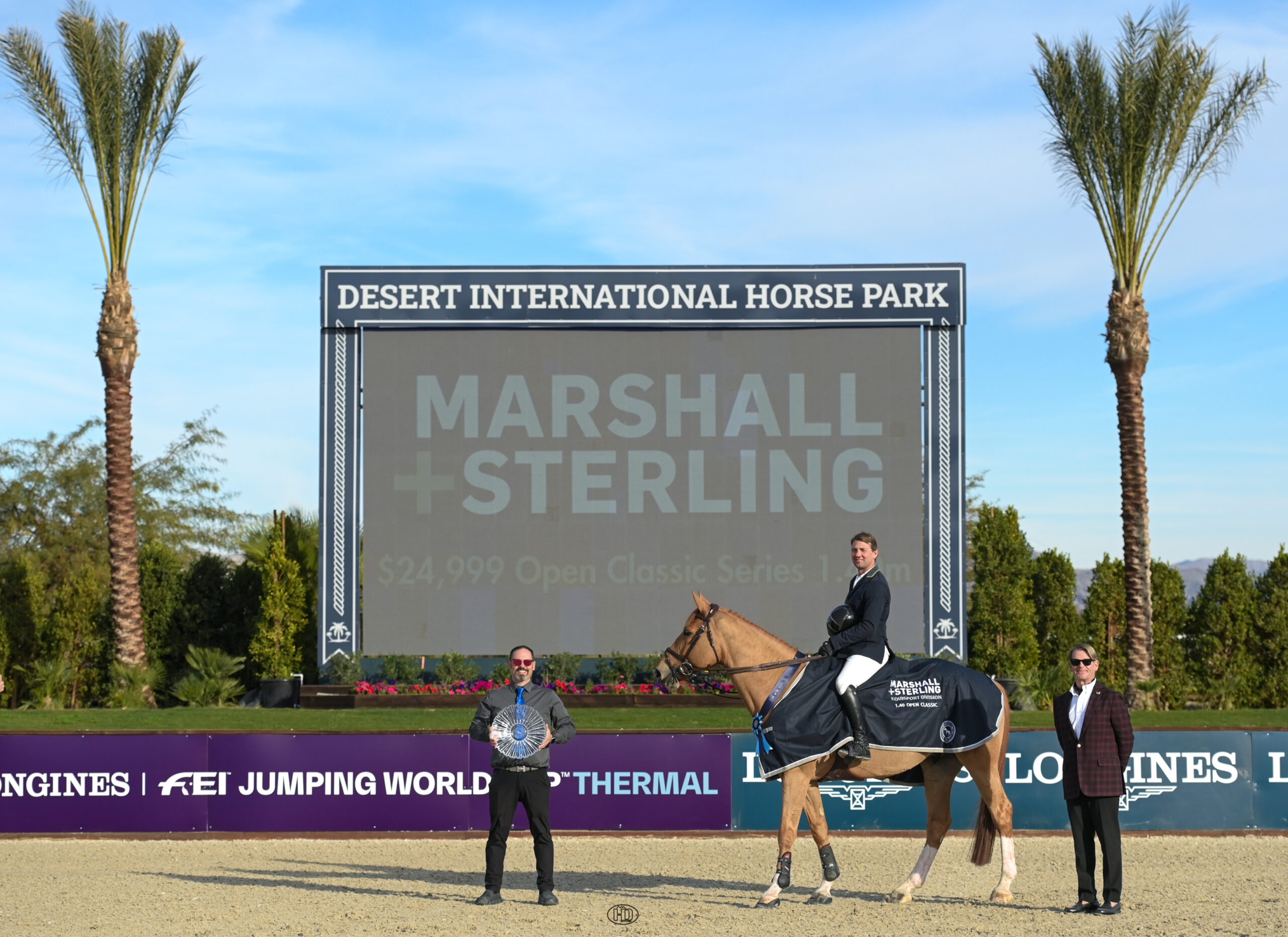 Cassio Rivetti was presented as the winner of the $24,999 Marshall & Sterling Insurance 1.40m Open Classic. Photo by High Desert Sport Photo