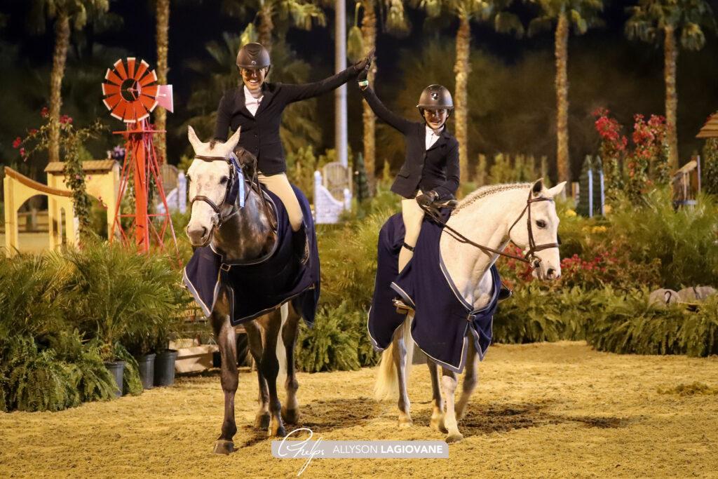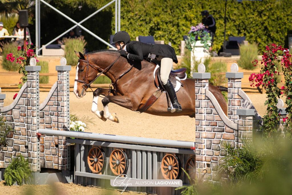 Returning for the handy, 12 combinations in each section faced a shortened course featuring eight obstacles, four of which presented high options for one bonus point each, and a trot jump on the far end of the arena. Returning in reverse order, the leaderboard saw shifts throughout the second round and it was clear the win could be anyone’s for the taking. In pole position with the highest first round score, Brittner, of Sacramento, CA, returned last for the handy round, knowing what she had to do to emerge on top. She handily navigated Berry De Maillet around the course taking inside turns and letting him carry the pace, meeting each jump with the power needed to wow the judges and earn a top score of 90.25 for an overall total score of 183.25 and ultimately clinch the win. Spencer and Gerardus, owned by Georgy Maskrey-Segesman, moved up the leaderboard to claim second place with a second round score of 90.5 and a total score of 181.5 Rounding out the top three just narrowly behind Spencer was Alario and Middlepath Farm, LLC’s Spoken For after earning a second round score of 89 to finish on a two-round total of 181.