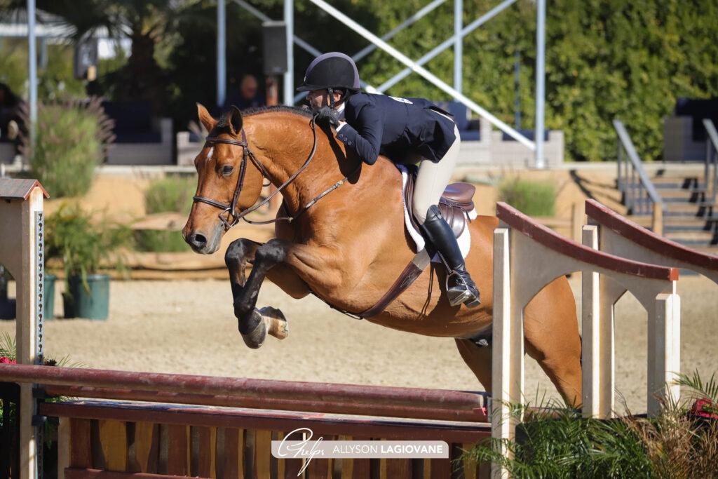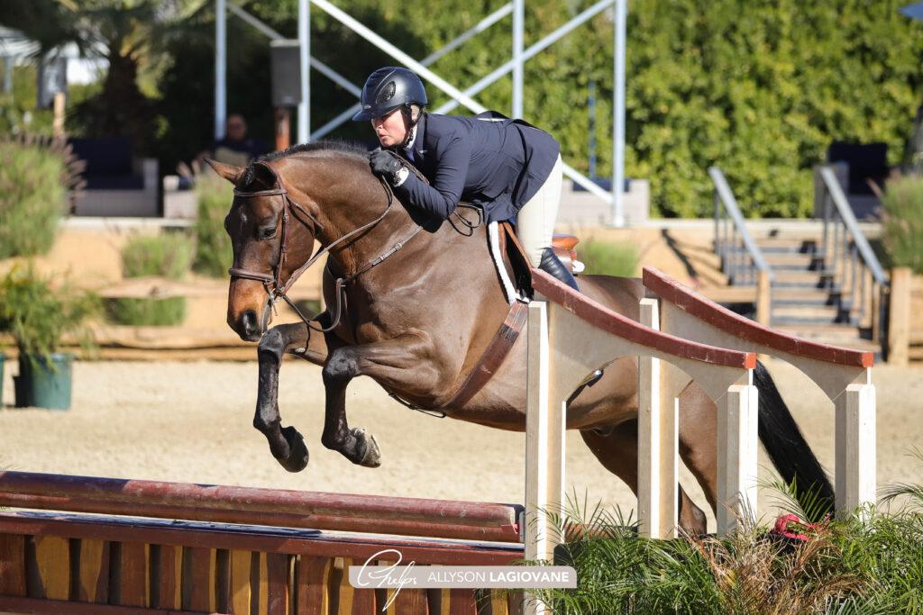 Thermal, Calif. – Feb. 6, 2022 – Amateur-Owner hunter competitors took to Hunter 1 Sunday morning for the final day of Desert Circuit III at the Desert International Horse Park (DIHP) to compete for championship honors in their respective heights and age groups. Over courses designed by Kevin Holowack, horse-and-rider combinations laid down the best they had to offer in an attempt to impress the judges one last time and secure the tricolor ribbon. In the end, it was Christina Smith and Soon To Be who rose to occasion to walk away with championship honors.