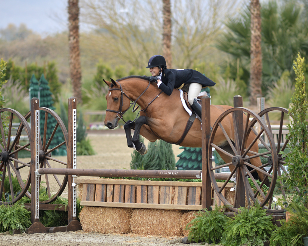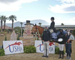 THERMAL, Calif. – December 11, 2020 – Christina Smith (Villa Park, CA) and her own Soon To Be topped the field in the $2,500 USHJA National Hunter Derby – Jr/Am, sponsored by RunAmok Horse Transportation. The pair bested a field of twenty-two competitors with scores of 90 and 92. Payton Potter (Woodland Hills, CA) and Khaled, owned by Infinity Equestrian LLC, earned reserve for their scores of 81.5 and 91. Alexandra Miller (Santa Fe, NM) and her own Please The Crowd, rounded out the top three with scores of 81 and 90.