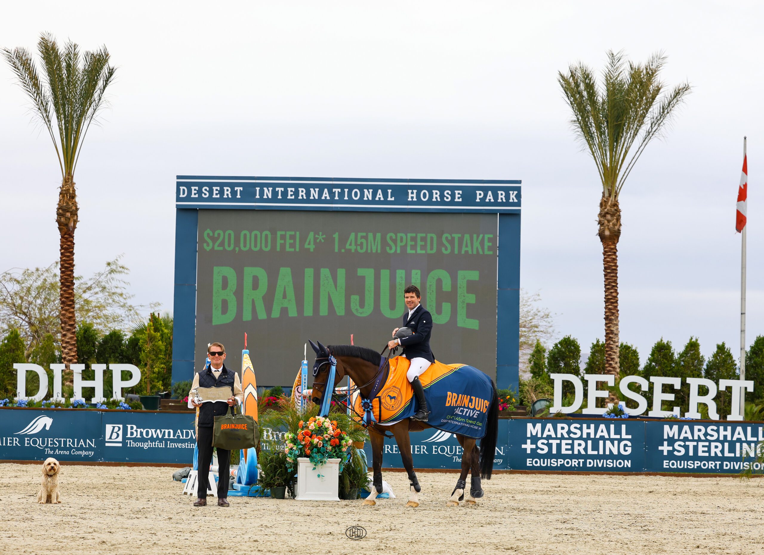 Bradley Bowns of DIHP presented Conor Swail and Count Me In as the winners of the $20,000 BRAINJUICE CSI4* Speed Stake. Photo by High Desert Sport Photo