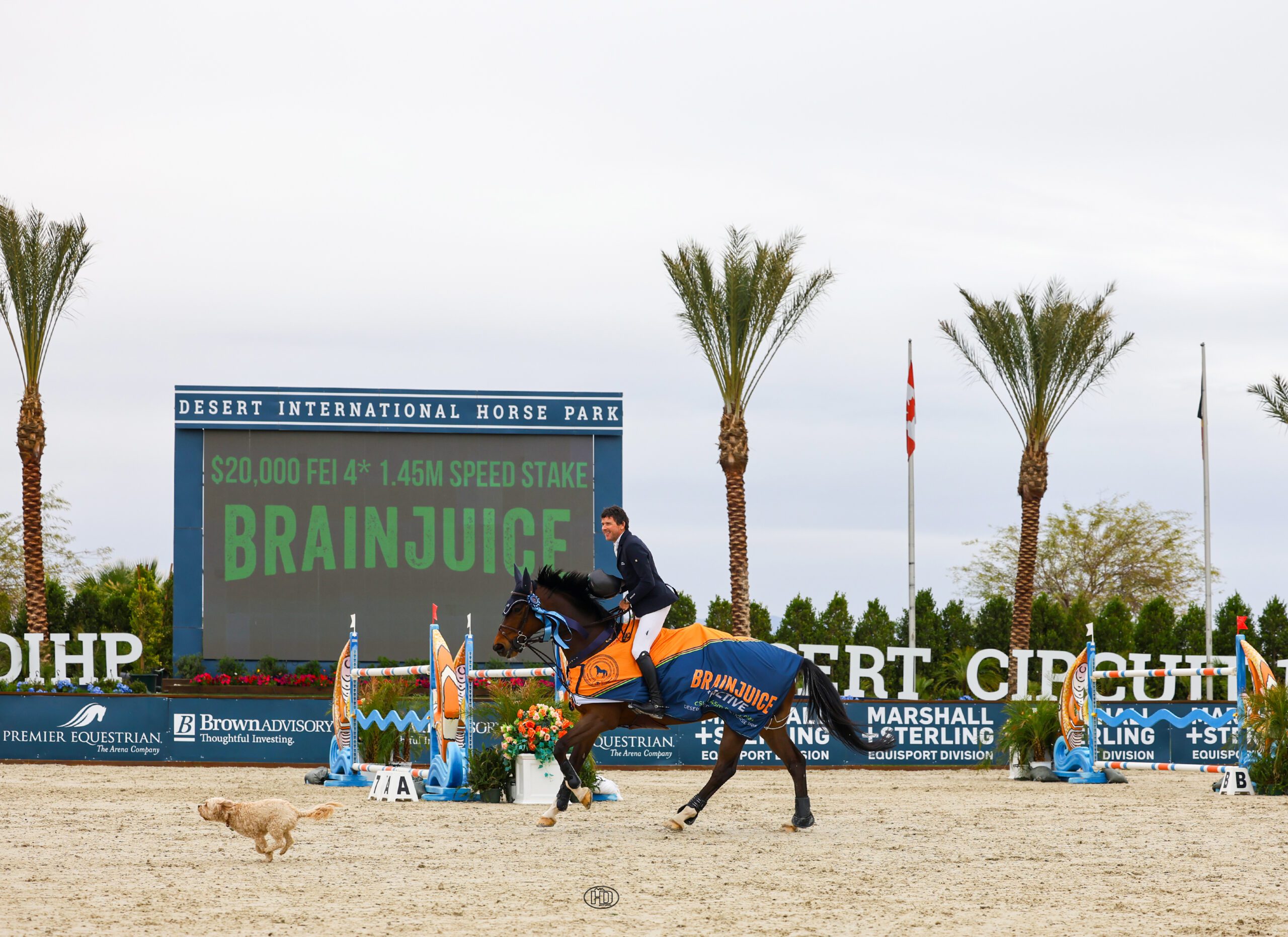 Thermal, CA – March 14, 2025 – Ireland’s Conor Swail can always count on Count Me In – including in Friday, March 14’s $20,000 BRAINJUICE CSI4* Speed Stake. With the win in the class, the gelding that Swail describes as his “serial winner” cruised to his third major victory of the 2025 Desert Circuit at the Desert International Horse Park.