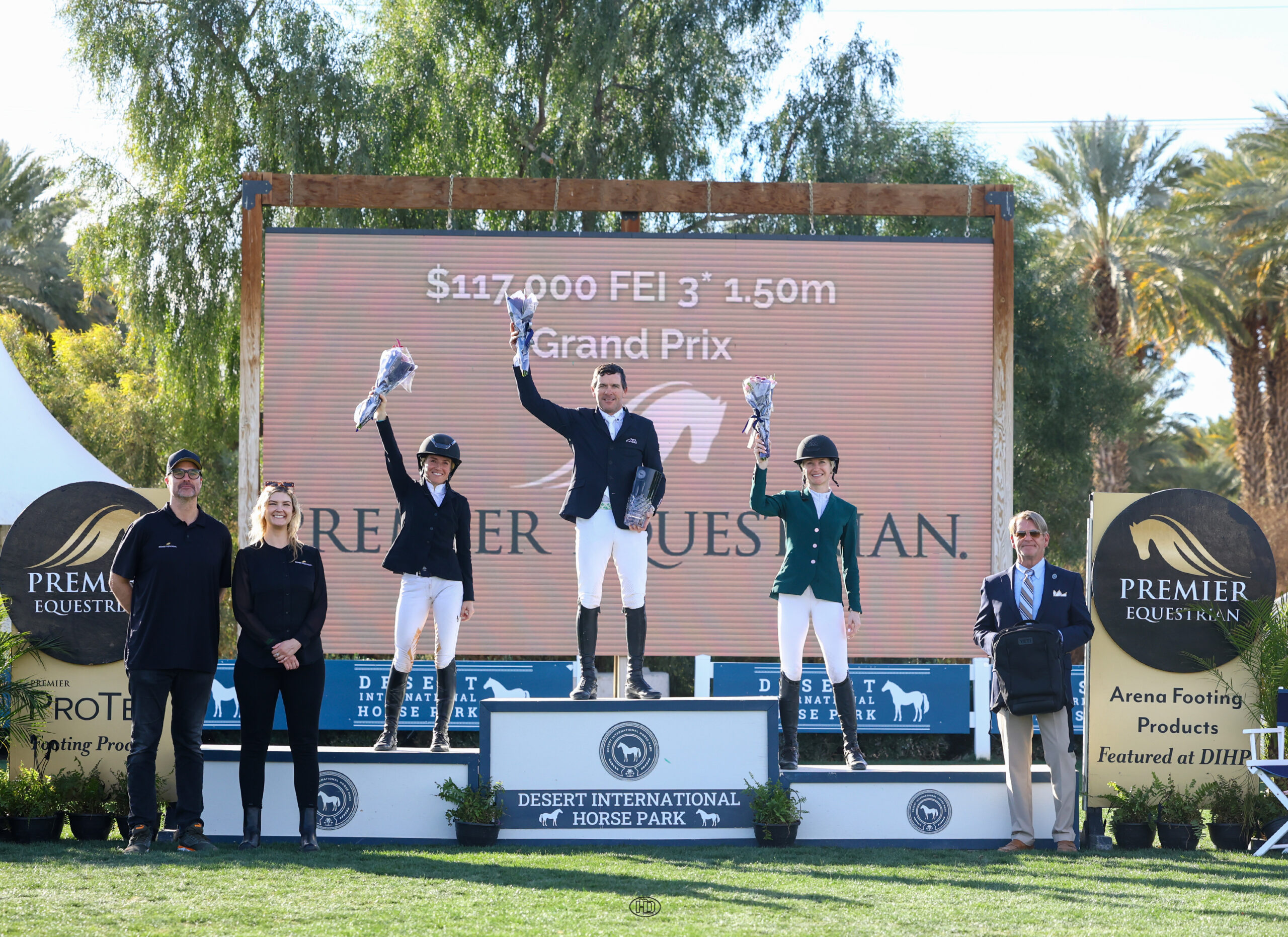 Conor Swail topped the podium in the $117,000 Premier Equestrian CSI3* Grand Prix. Photo by High Desert Sport Photo