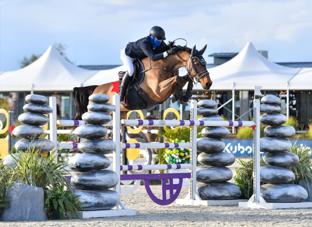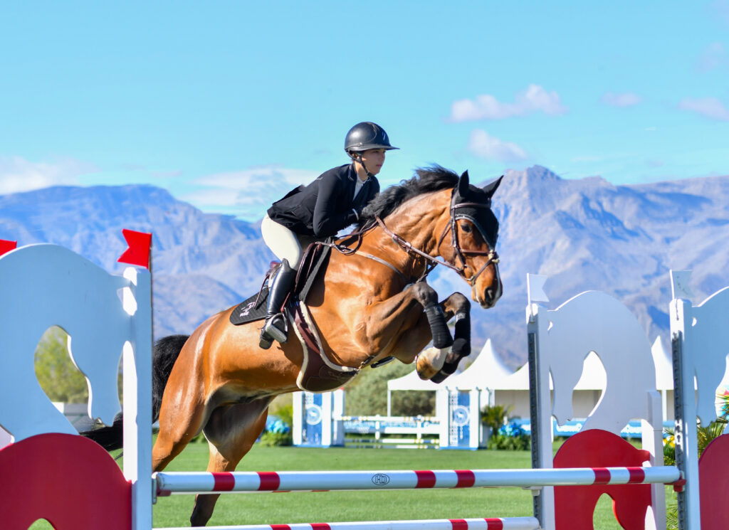 With the Young Jumpers on the grass for Desert Circuit 9, presented by Kubota, Gomez and Catoki’s Blue faced a new environment with new challenges, but they were challenges met with grace. The duo took wins on Wednesday and Thursday in the 5-Year-Old division, finishing Thursday with a double-clear effort.