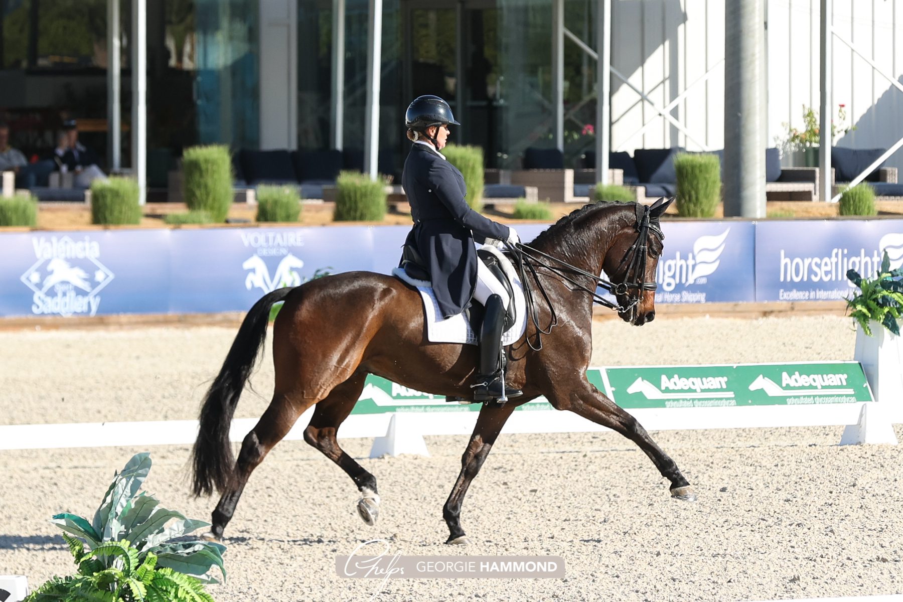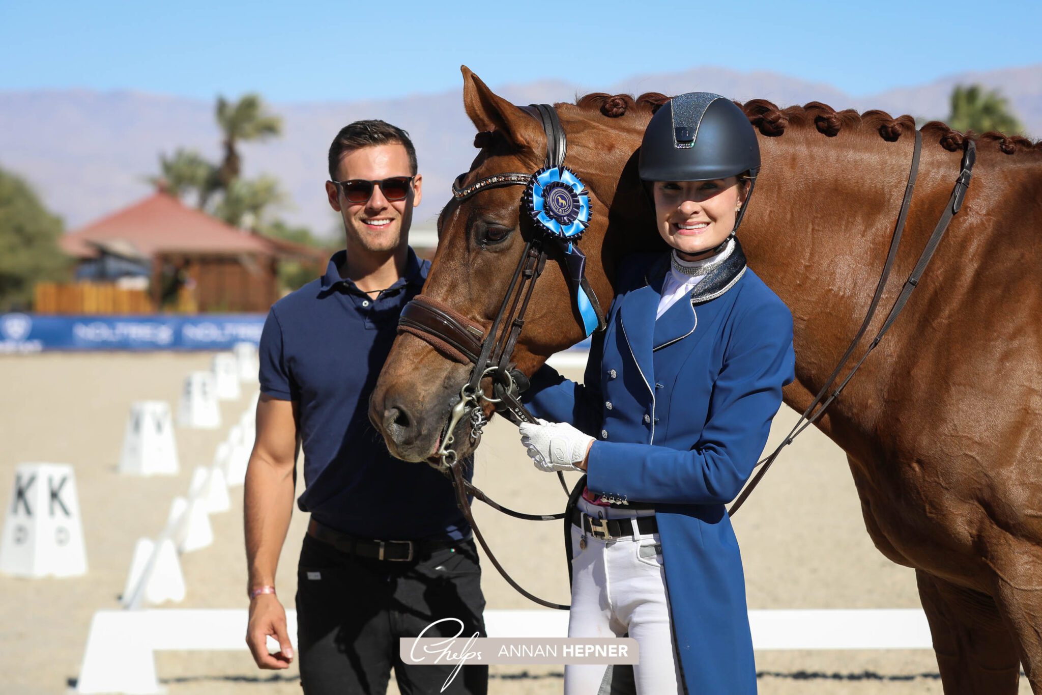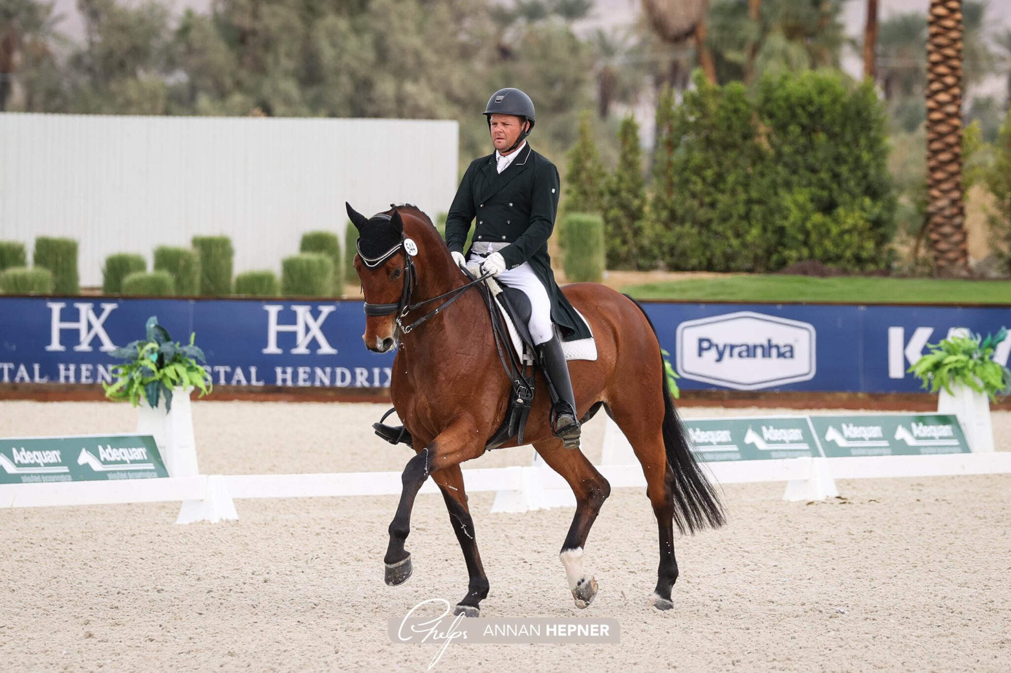 Thermal, Calif. – Nov. 21, 2021 – The final day of Adequan® Desert Dressage II wrapped up Sunday, Nov. 21, at the Desert International Horse Park (DIHP) with three international classes and ample national tests taking place under the California sun in Thermal, California. Riding down centerline bright and early, a competitive field of small tour riders took to the ring in the Ebeling Dressage CDI1* Intermediate I. Kristina Harrison-Antell was first to go in the class and she wowed the judges to ride away with the win with a score of 72.412%, while Claire Darnell won the Deb Pulver CDI3* Intermediate II later Sunday morning with a 69.882%.