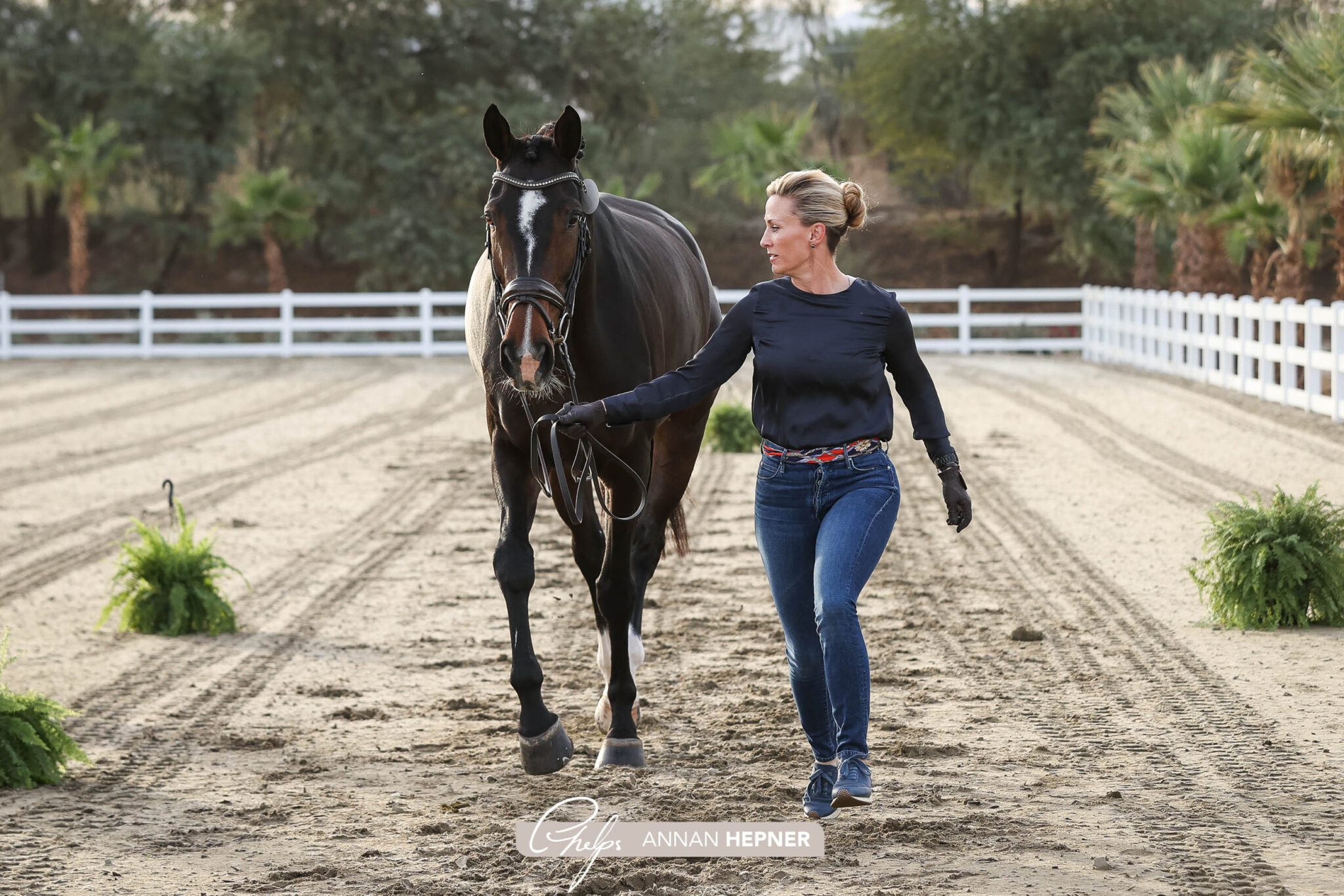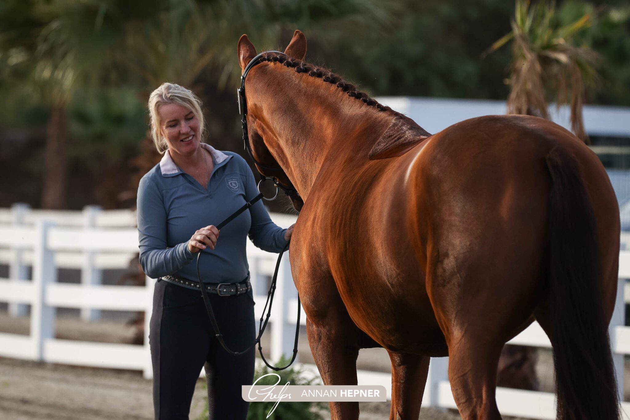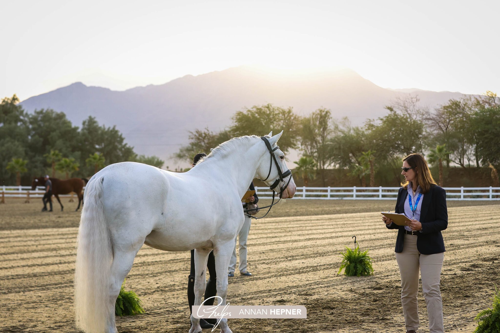 Making her debut at the Desert International Horse Park, Karen Pavicic and her mount Totem (Totilas X Denebula) were one of the passed pairs in the inspection. The 9-year-old Hanoverian gelding has been with Pavicic since he was a foal, developing up the ranks with her throughout his years as a young horse. Totem will be making his Grand Prix debut with Pavicic in the irons this week, a special occasion that will also mark Pavicic’s first time riding Grand Prix in five years