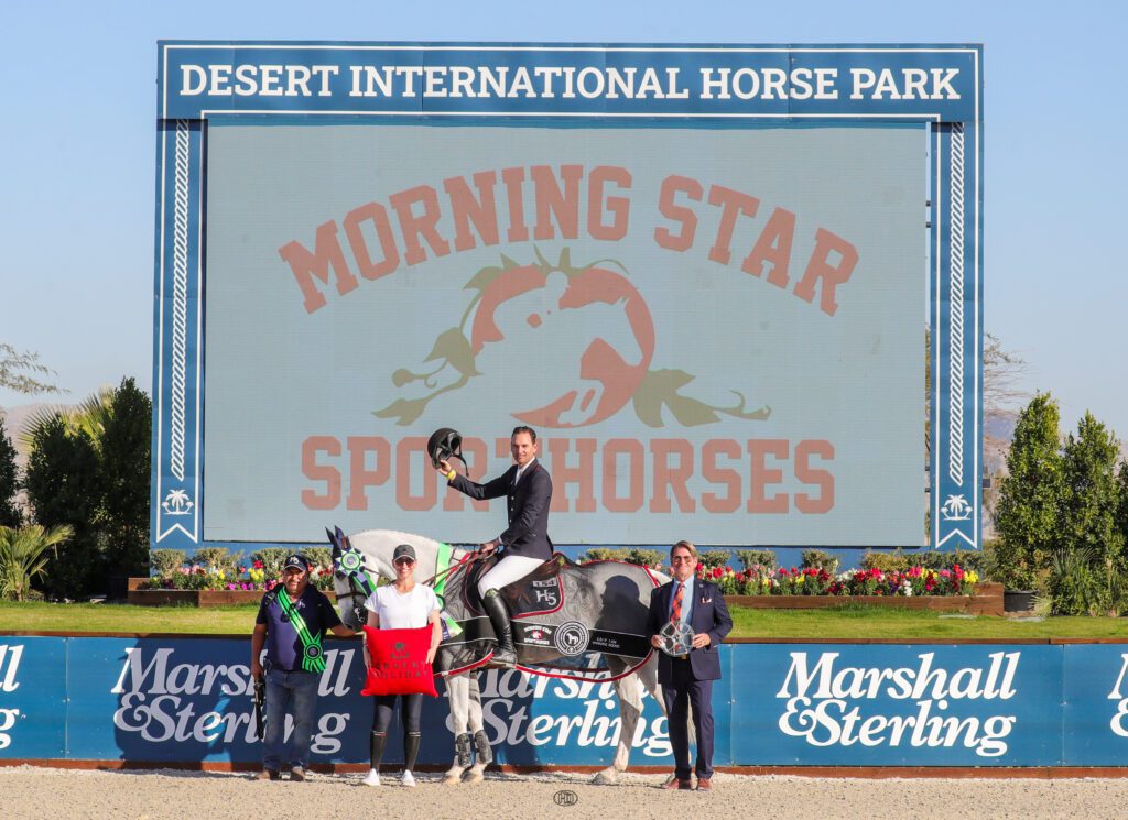 Eduardo Menezes (BRA) wasn’t going to let his student, Carlos Hank Guerreiro (MEX), win so easily a second week in a row. While Menezes didn’t have the last word, he did put in just quick enough of a jump-off round to secure the win and put Hank Guerreiro into second as the $38,500CAD Morning Star Sporthorses CSI5* Winning Round came to a close on Thursday of Desert Holiday 2, presented by Visit Greater Palm Springs.
