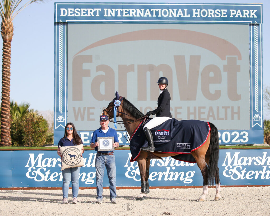 Eliza Broz and Tinkerbell have competed in the $30,000 FarmVet 1.45m Open Classic twice together during Desert Circuit so far, and the duo has won in both outings. With a 100% strike rate in the class, Broz and the 13-year-old Mecklenberger mare (Chacco Blue x Silvio) blazed an unbeatable class in the week five edition Thursday afternoon.