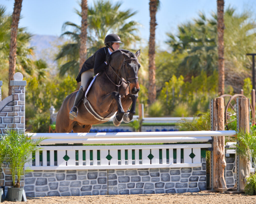Luckily for Nicole Bourgeois, no birds played a role in Friday’s $10,000 Amberway Equine USHJA National Hunter Derby – Open at Desert International Horse Park (DIHP).