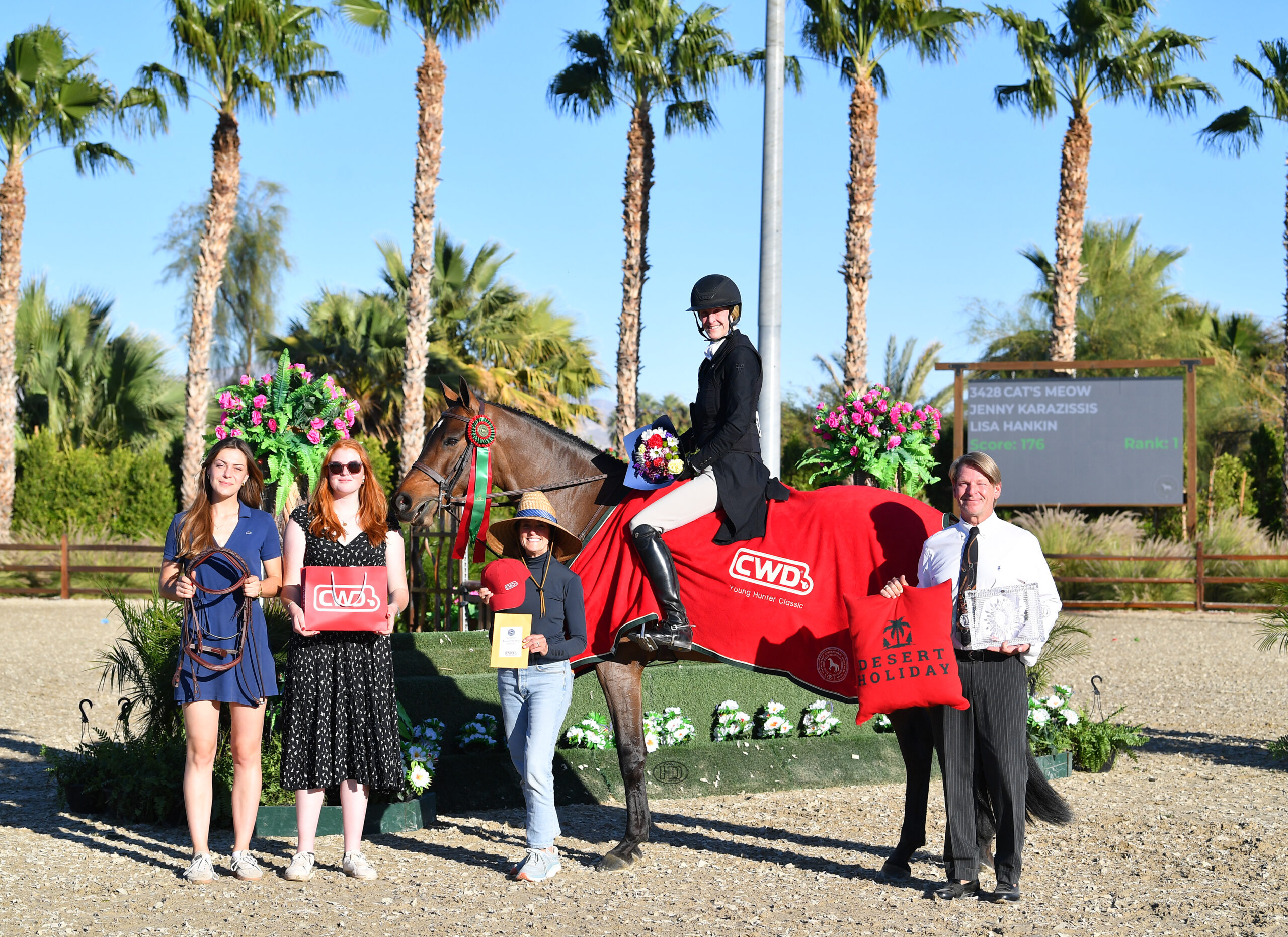 “I couldn’t be happier going into next year with this win that we had today!” said Karazissis, who has had the ride on Cat’s Meow for owner Lisa Hankin since early 2024. “He’s very green, but you can just see the potential. He’s so refined and a beautiful mover. He’s super brave at the jumps. He could not have been better today, and I could not have a better owner in Lisa Hankin because she is all about the process and bringing them along.”