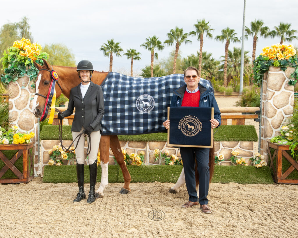 Thursday morning of Desert Circuit I at Desert International Horse Park (DIHP), the duo claimed championship honors in the 3’6” Green Hunter division.