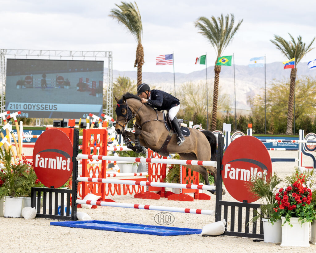 Kyle King exploded into the world rankings over the past couple years and his 2023 season is off to an equally explosive start, as he took the win in Thursday’s $30,000 FarmVet 1.45m Open Classic at Desert International Horse Park (DIHP). Aboard Patricia Vase’s Odysseus, a newer ride for him, he sped to the fastest time in the single-round speed class, adding a victory to his name in the opening week of Desert Circuit.