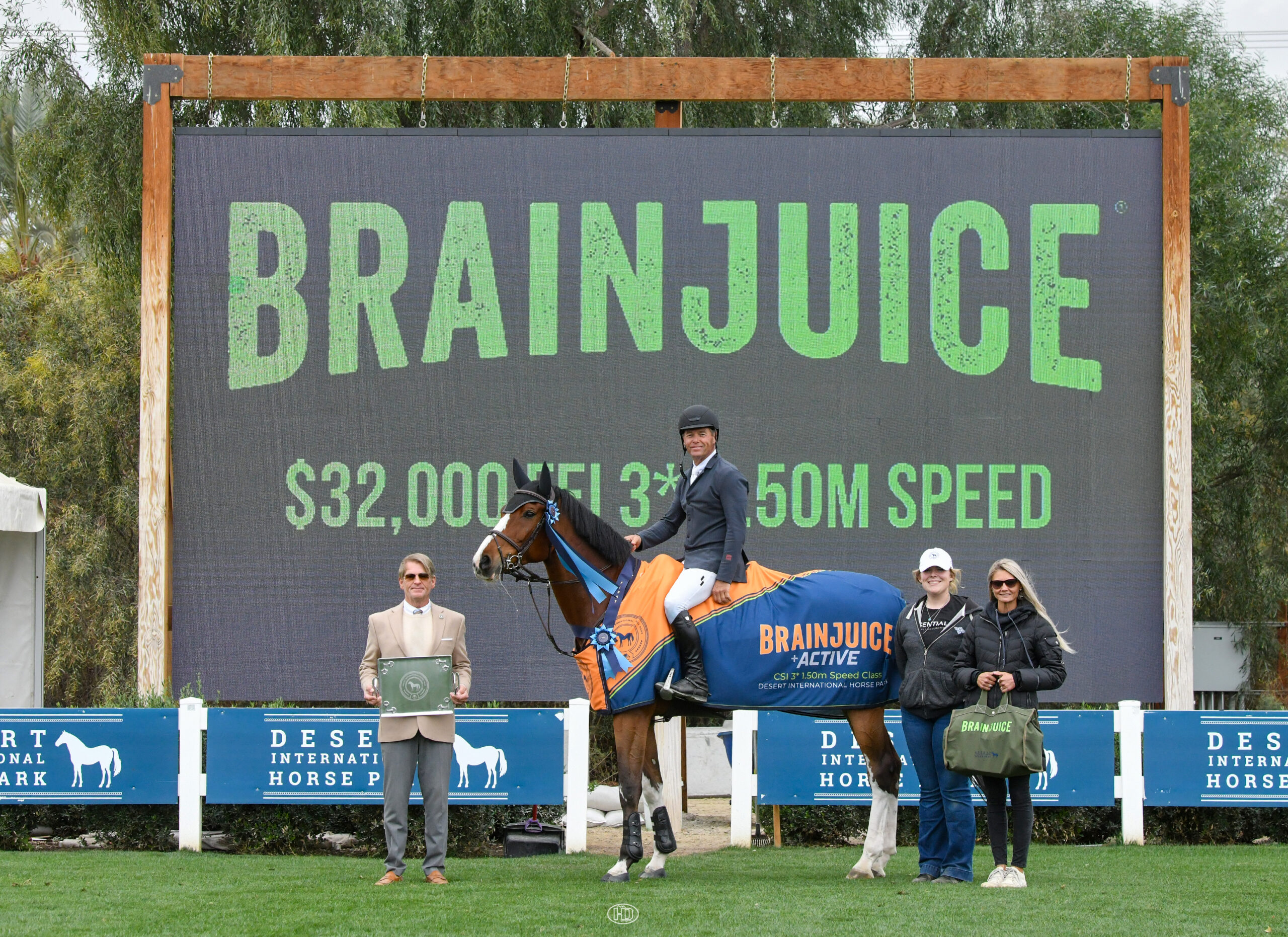 Kyle King and Ezio de Emeraud were presented as the winners of the $32,000 BRAINJUICE CSI3* Welcome Speed. Photo by High Desert Sport Photo