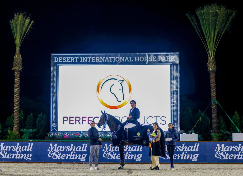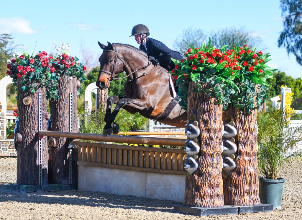James Chawke, master of the 1.35m fence height at DIHP, struck again in the $7,500 Interactive Mortgage 10 & Under Futurity Series during Desert Circuit 5, presented by Premier Equestrian. This time aboard Daido Van’t Ruytershof Z, Chawke put in a very competitive jump-off time and secured the win. Mandy Porter took second with Cara Mia 155, owned by Risen Eq Holdings LLC, and Hannah Evans claimed third with Jane Avril Des Terdrix.