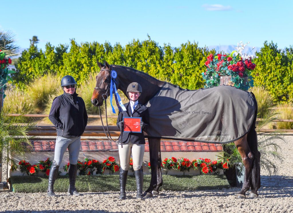 Maggie Dumrauf and Cognac in their winning presentation, pictured with Amanda Tallman. Photo by High Desert Sport Photo