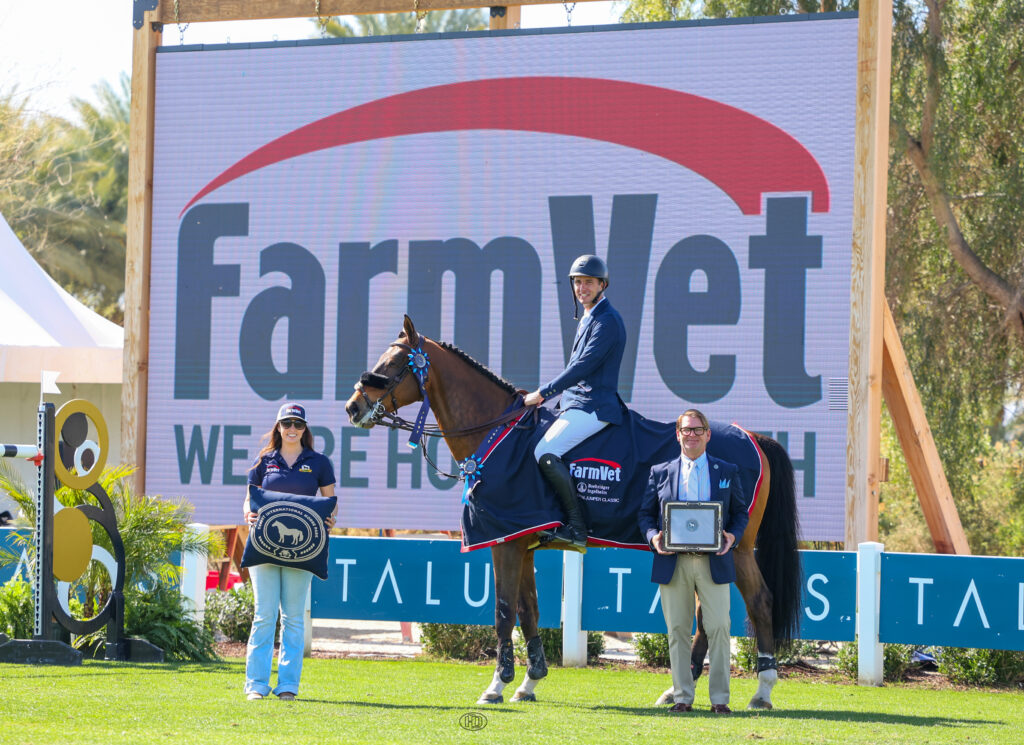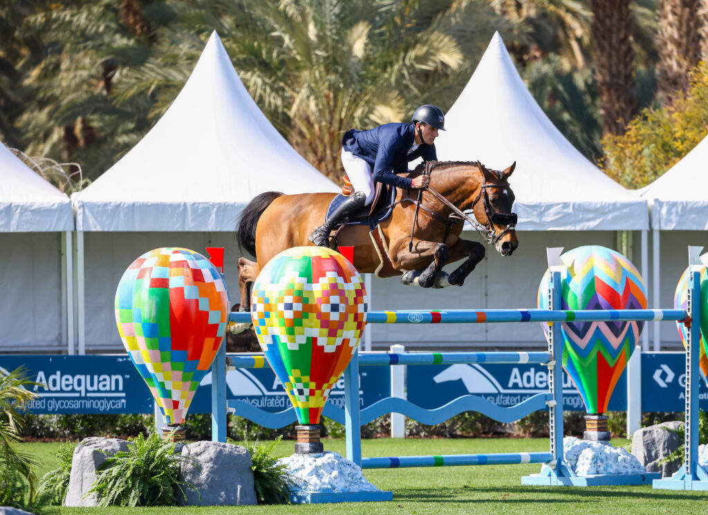 Gregory Wathelet made waves on the grass field as well Thursday of Desert Circuit 6, presented by IDA Development and Barnwalkers, scoring a win with Beau Gosse du Park in the $25,000 FarmVet 1.45m Open Classic.