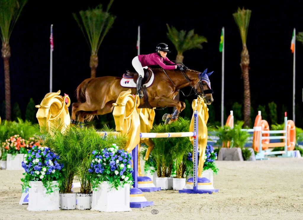 “I was very nervous,” she reflected. “I looked at the rider list and Gregory and James Chawke were in it, and I was nervous. It wasn’t about the height, it was about the lights. I had never ridden this horse under the lights before. I’d only shown him about six times and I’d won five out of the six times.”