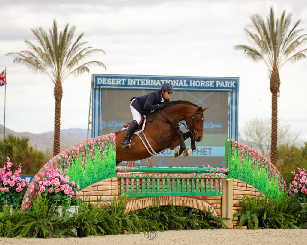 Competition on the grass field during Desert Circuit VIII continues Saturday with the $38,700 Whittier Trust CSI3* 1.45m Classic and the $50,000 Adeptus National Grand Prix. The Grand Prix Arena will welcome young athletes back to test the $7,500 Valencia Saddlery NAJC Trial 1.40m Classic, followed by Saturday evening’s $15,000 Ritz Carlton Speed League Final.