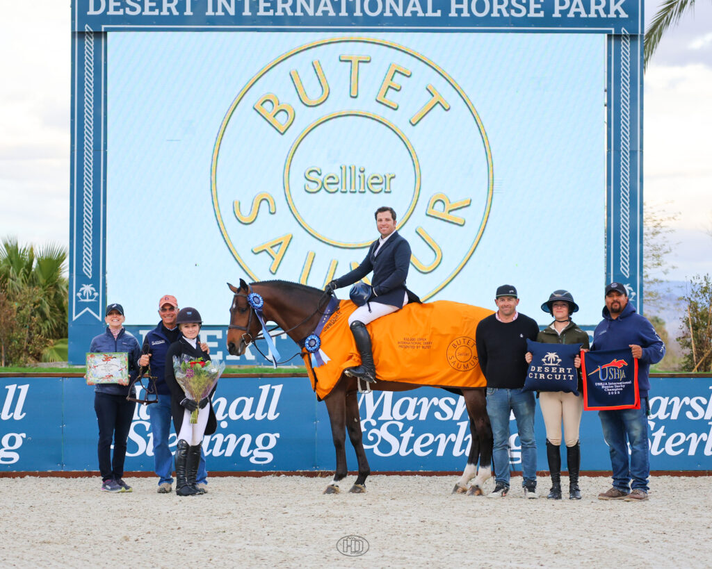 If you’re feeling a bit of déjà vu from the most recent International Hunter Derby during Desert Circuit V, you’re not alone. On Friday of Desert Circuit VIII, Nick Haness piloted Estimated Prophet, owned by Roaring Fork Farms LLC, to a repeat win in the $50,000 Butet USHJA International Hunter Derby, this time in the Grand Prix Arena.