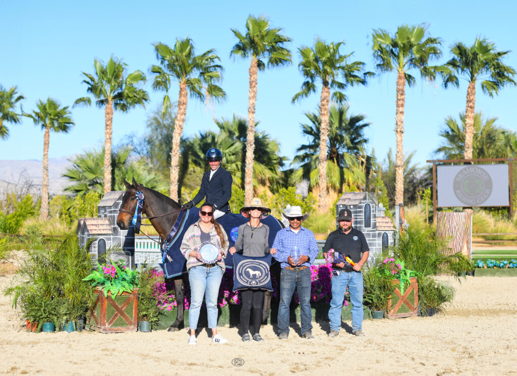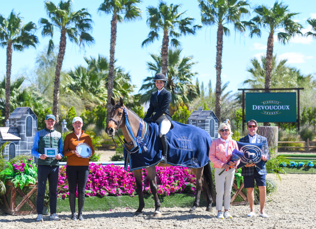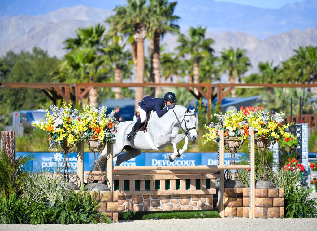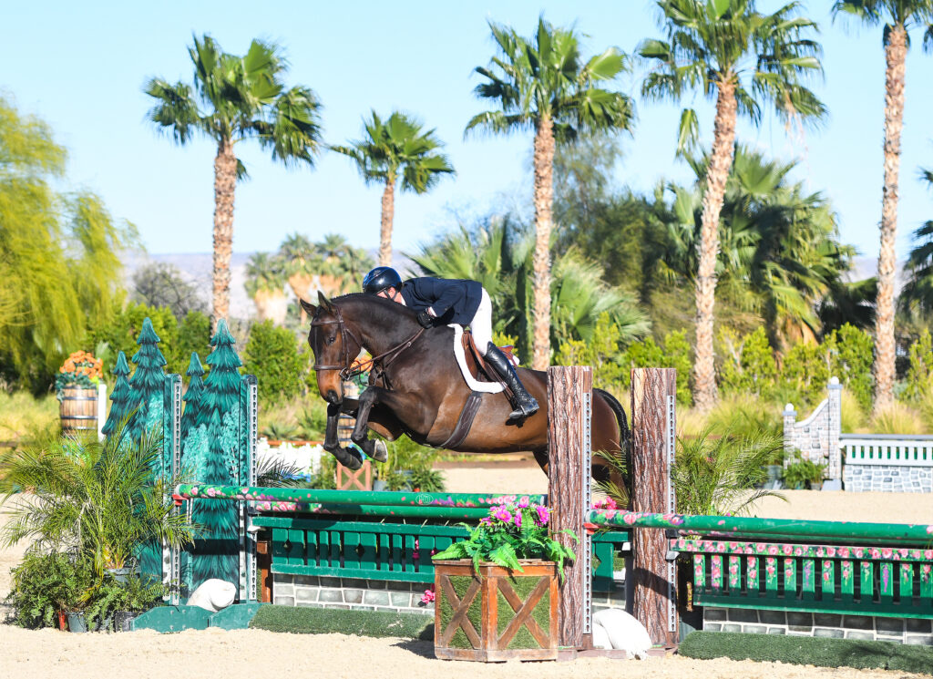 Simon Schroeder is becoming a true master of hunter derby action at Desert International Horse Park, claiming yet another victory to add to his list of accolades, this time in Friday’s $10,000 USHJA National Hunt & Go Derby – Open, sponsored by Seahorse Riding Club. His mount was Corillo Of Greenhill Z, an entry owned by O’Neill Show Jumping LLC.