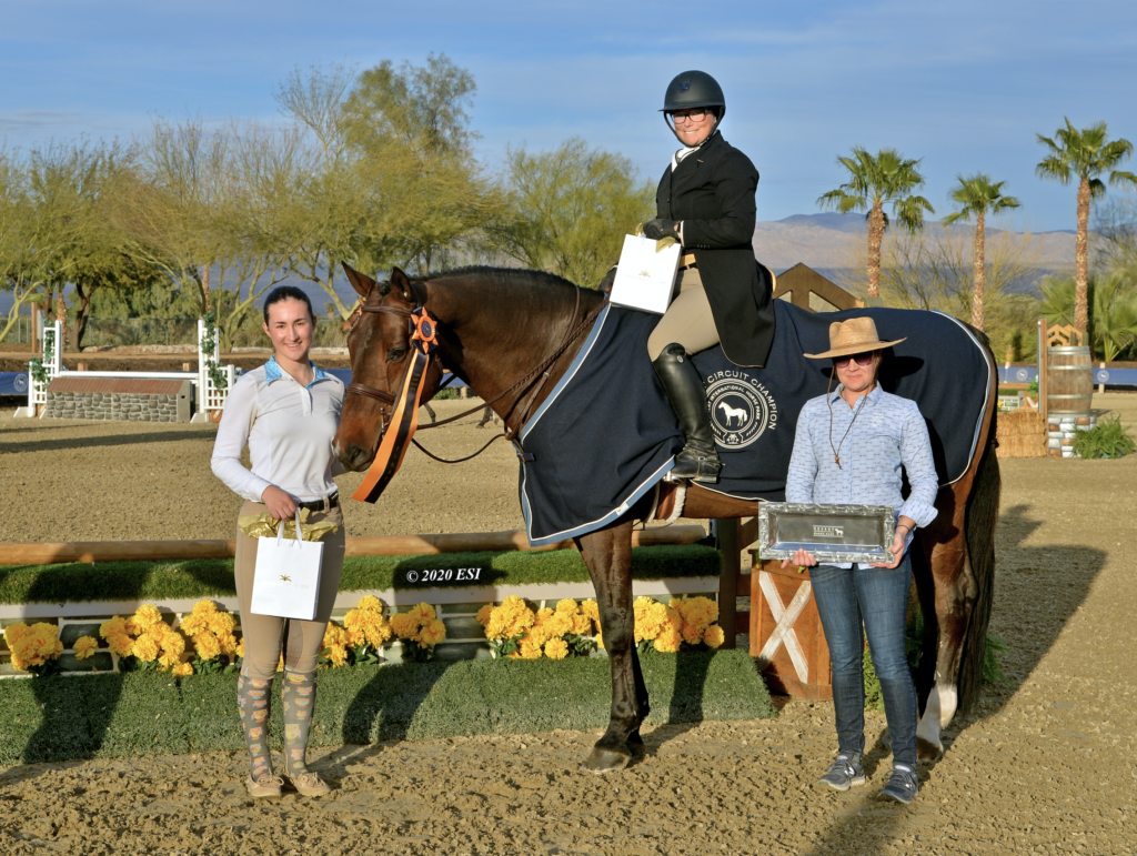 THERMAL, Calif. – February 21, 2020 – It was a team effort for Nicole Wilson, Marisa Metzger, and Centerfold K to come out on top in the $2,000 Pro/Am Low Hunter Challenge, sponsored by El Paseo Jewelery. Nicole Wilson (Vail, CO) rode Centerfold K in the first round of the class to a score of an 86. Marisa Metzger (Parker, CO) then took the reins and rode Centerfold K, owned by Henge Hill Investments, to an overall first place finish with her second round.
