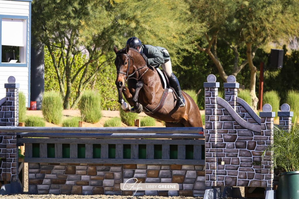 Haness and Only Always, a 9-year-old Warmblood gelding owned by Balmoral, paved the way to earn top honors from a competitive group of horses as they set the pace early on in the class with a high score of 89. The pair are no strangers to the winner’s circle at the Desert International Horse Park (DIHP), earning a first and third place ribbon over fences during day one of competition Wednesday in the combined High Performance/Green Conformation Hunter division. Only Always was awarded for his fluidity, consistency and form over each jump, ultimately earning the blue ribbon. The dynamic pair also won the $1,000 CPHA West Coast Green Hunter 3’6”and 39” Hunter Stake and were champion in the combined High Performance/Green Conformation Hunter division to round out a fantastic start to the week.