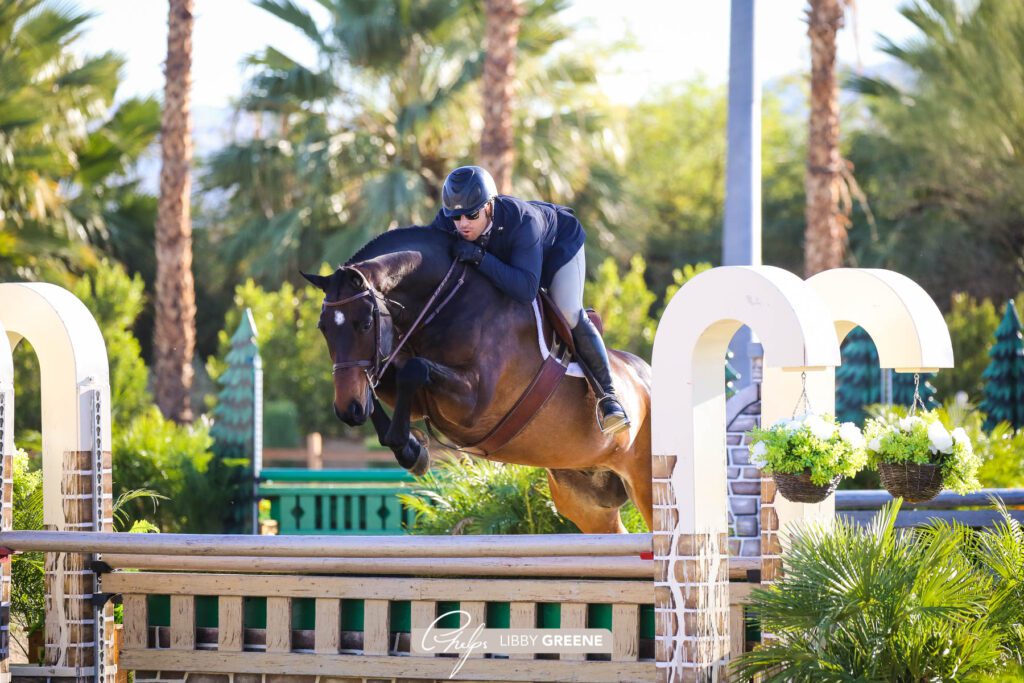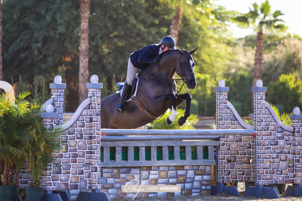 Thermal, Calif. – Dec. 2, 2021 – Hunter competitors were eager to begin day two of competition Thursday, December 2, at the Desert Holiday I, starting with the highly competitive $1,000 USHJA Green 3’6” and 3’9” Hunter Incentive Stake. Nick Haness and Only Always took to hunter competition with a strong start riding to first place honors in the Green 3’6”and 3’9” Hunter Incentive Stake out of a strong group of 15 horse-and-rider combinations. Haness and Sunset Boulevard took home second place, while Mitch Endicott and Aventus rounded out the top three.