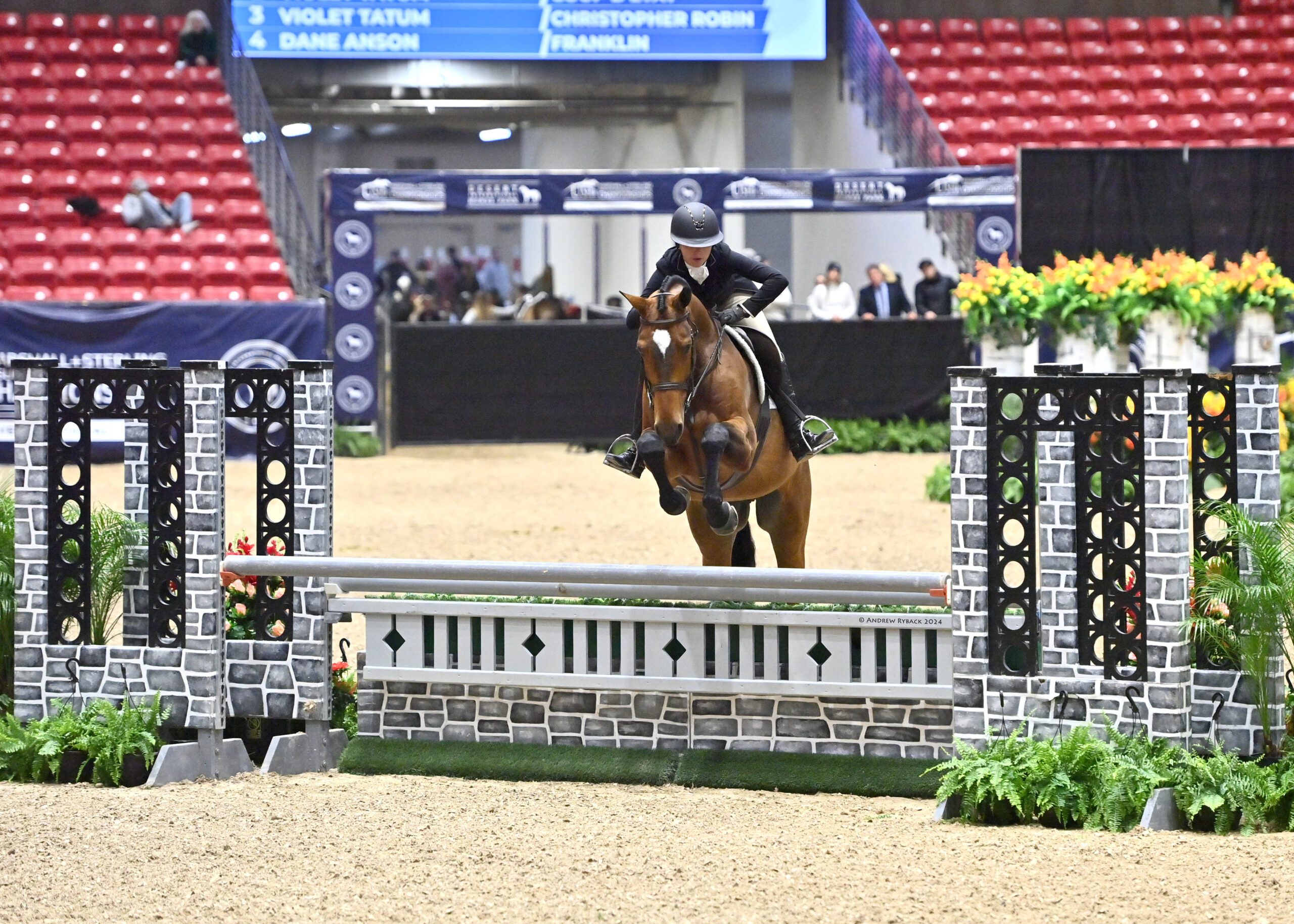Las Vegas, NV – November 14, 2024 – With Paige Walkenbach in the irons, Princeton, or “Prince” as he is known in the barn, could deservedly be crowned king of the $25,000 USHJA National Hunter Derby – Junior/Amateur at the Las Vegas National Horse Show.