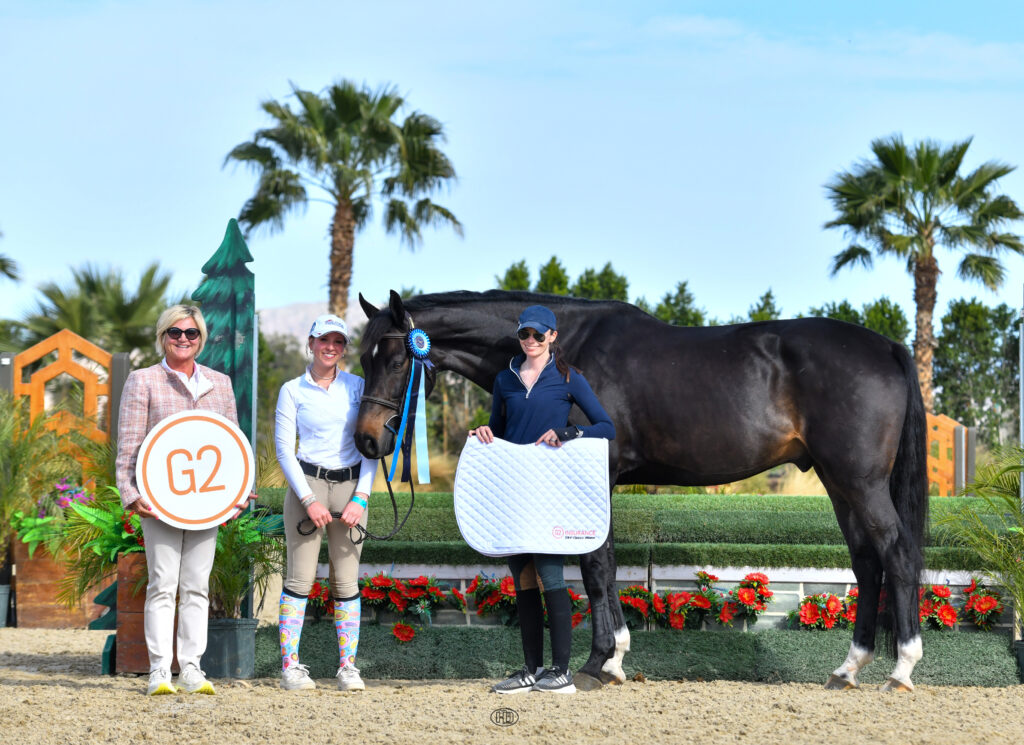 Jacqueline Chawke and Wrenwood Polly Pocket in their winning presentation, pictured with Susie Schroer of MeadowGrove Farm and Carrie Kehring of #WeRideTogether. Photo by High Desert Sport Photo