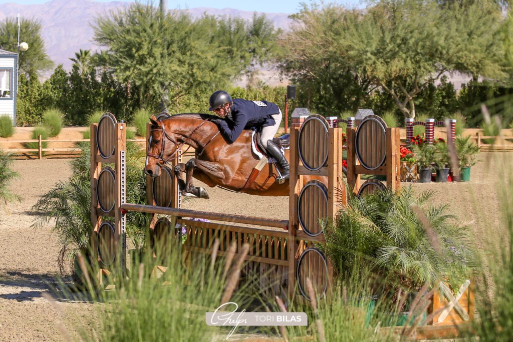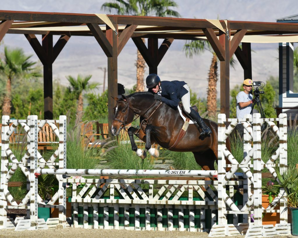 Thermal, Calif. – Nov. 3, 2021 – Athletes returned to the Desert International Horse Park on Wednesday to kick off the season during the first week of the National Sunshine Series. The professional hunter divisions took center stage in Hunter 1. Shawn Casady and the Ashland Farms-owned Cassario 8 had a dominating performance in the Green 3’9” Hunters, winning both of the division’s over fences classes to start the week.