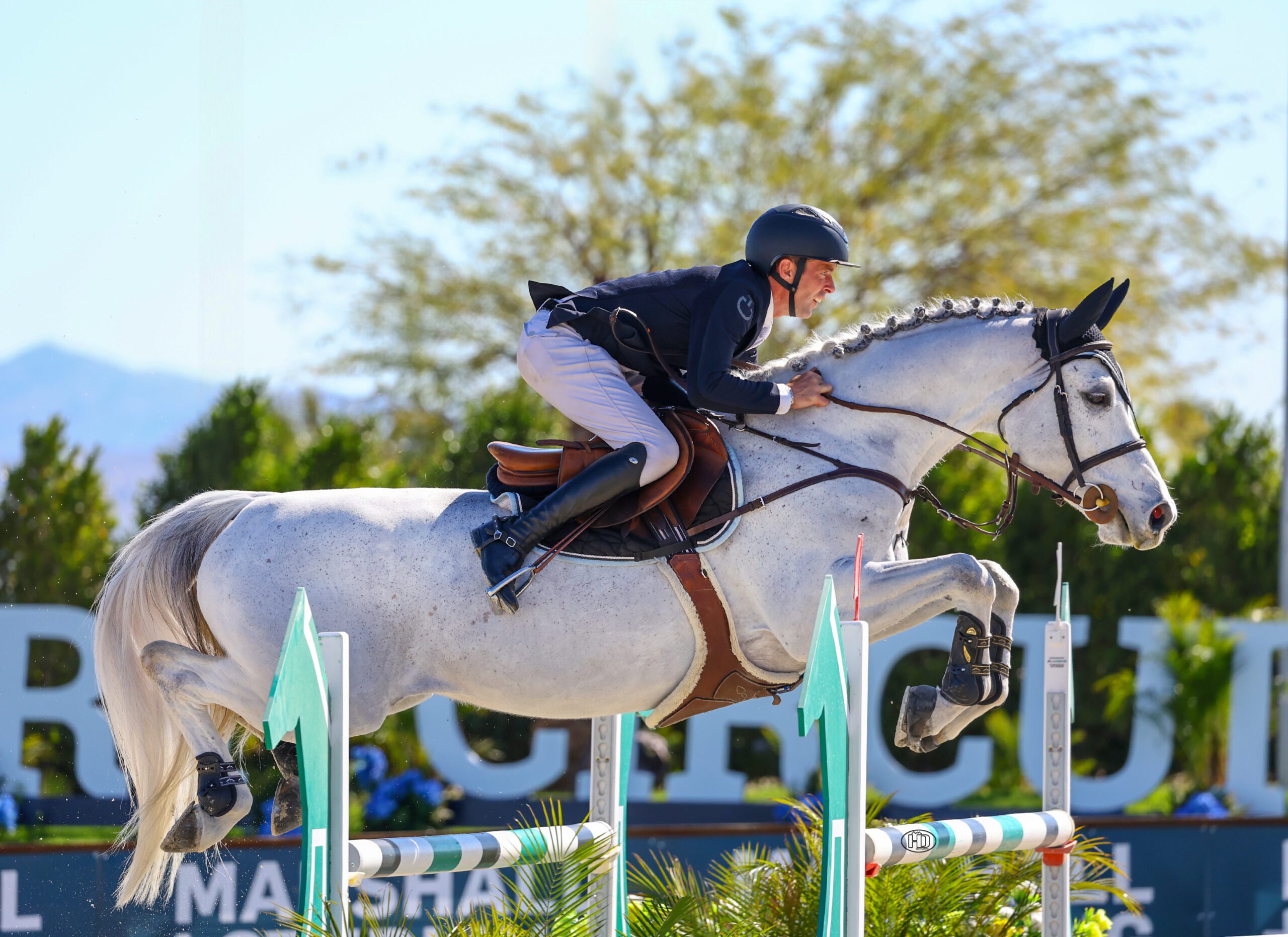 Thermal, CA – February 26, 2025 – Simon Schroeder and Charlie Red Wine CS kicked off Desert Circuit 8, presented by Adequan, with a win in the $10,000 IDA Development 1.35m Welcome Speed on February 26, 2025, at the Desert International Horse Park.