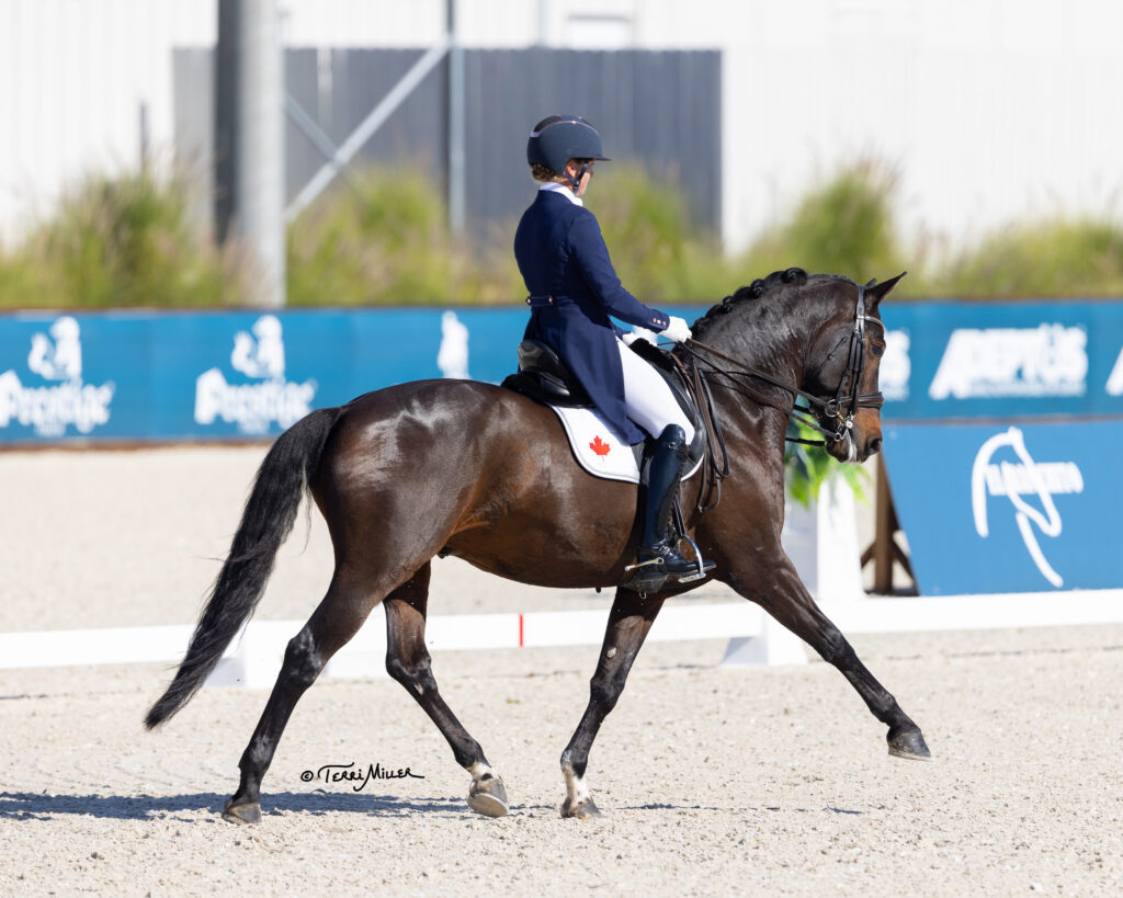 Earlier Friday, Pia Virginia Fortmuller’s luck continued after a strong performance in October in the desert, as she took top honors in the CDI3* FEI Grand Prix, sponsored by It’s A Good Life Podcast. Aboard the 11-year-old gelding Kartsevo Goldfinch (Jazz x Lingh), the Canadian rode to a score of 66.562%.