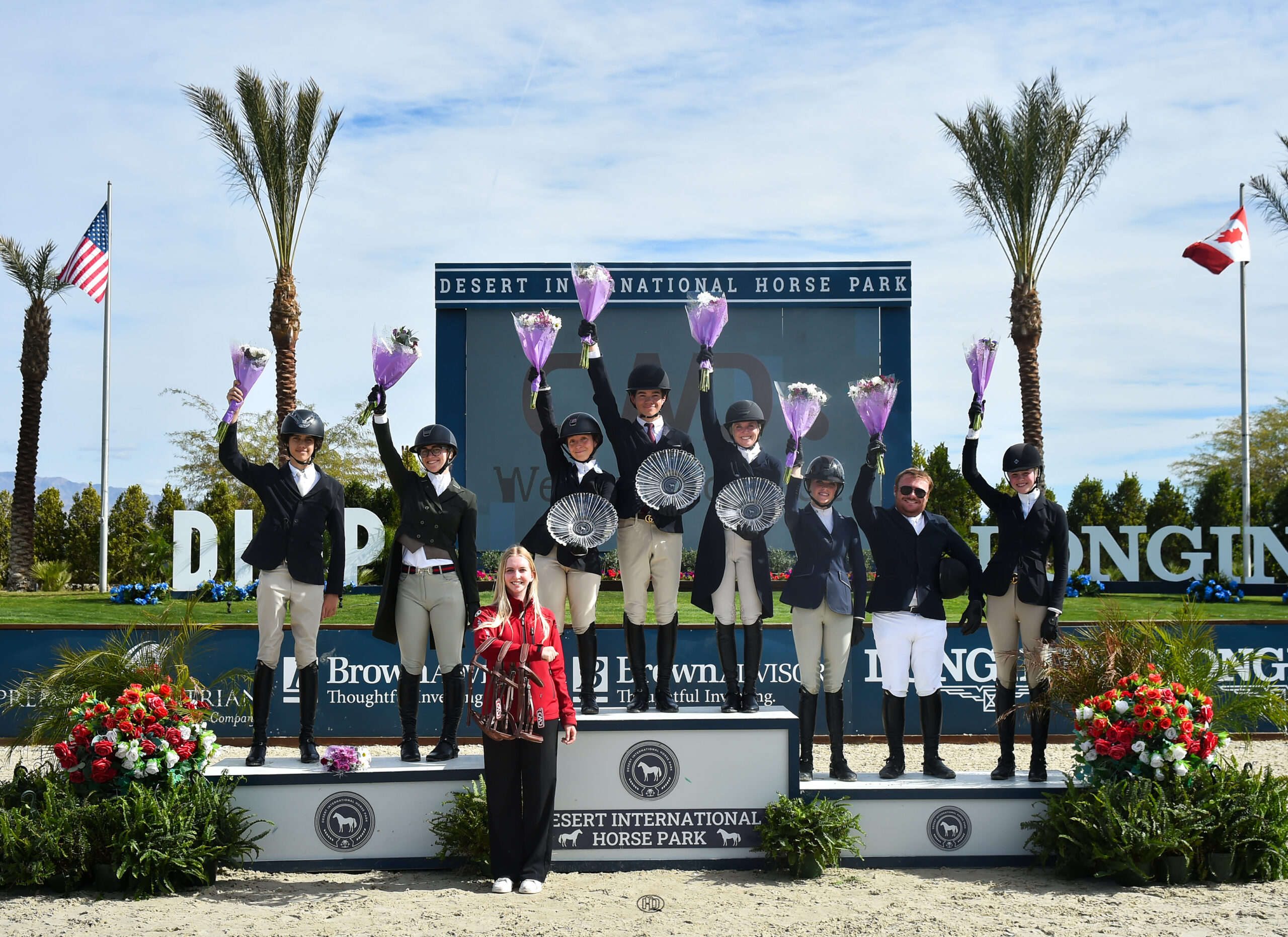 Thermal, CA – February 7, 2025 – The $25,000 CWD Sellier Nations Cup Hunter Team Challenge concluded on Friday, February 7 at the Desert International Horse Park with Team Brookway winning by a large margin with 347 points. Team members included Karli Postel and Carlios, Dane Anson aboard Franklin and Sophie Cohen on Christopher Robin.