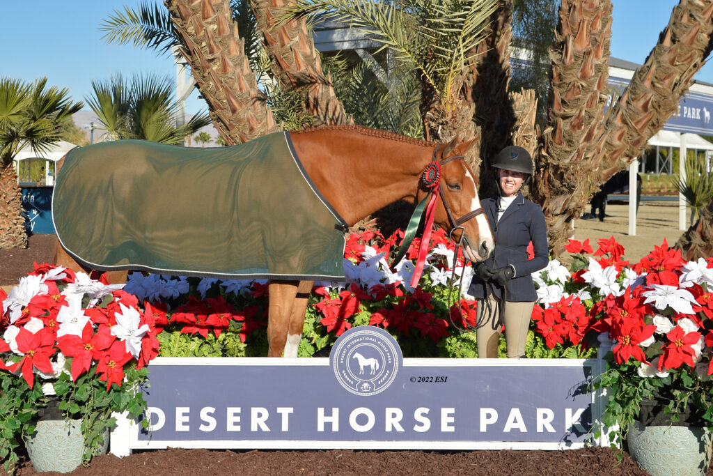 Thursday afternoon, she took championship honors aboard her mount, better known in the show ring as Crowd Pleaser, owned by West Coast Equine Partners LLC, in the 3’6” Performance Hunters during Desert Holiday II.