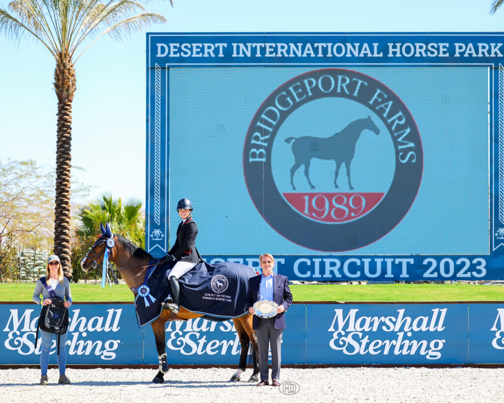 Sara Petersen and Chaplin, owned by Jan O’Brien, have found their sweet spot and are thriving in the 3’6” Performance Hunters at Desert International Horse Park (DIHP), taking championship honors during Desert Circuit VII. The 13-year-old Holsteiner gelding by Casall came into Petersen’s barn five years ago and isn’t going anywhere.
