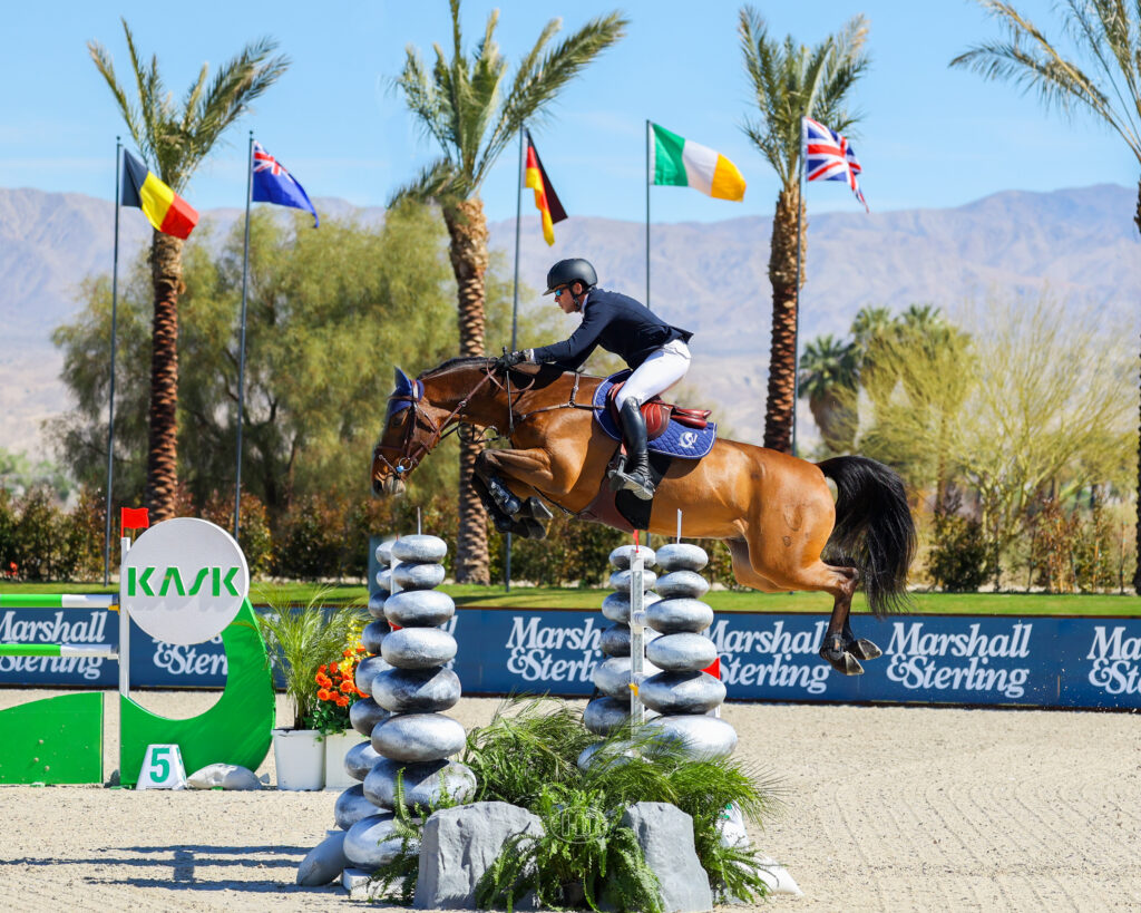 Kyle King added another big win to his name Thursday, adding additional prize money towards his already promising position on the open jumper rider leaderboard for Desert Circuit. King took top honors in the $30,000 FarmVet 1.45m Open Classic aboard Patricia Vasey’s Odysseus, speeding to the win in the single-round speed class and further solidifying his partnership with the 12-year-old American-bred Holsteiner gelding (Osilvis x Riverman).