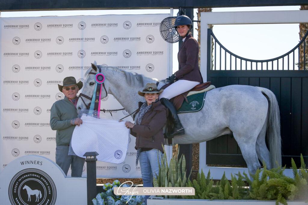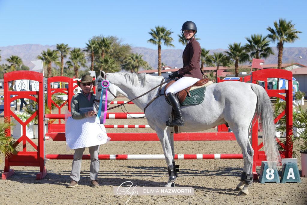 In a brand new series, Desert International Horse Park will feature the winner of a weekly class during each of the remaining weeks of Desert Circuit. First up is the winner of the $1,500 NAL Adult Amateur Jumper Classic 1.15m, sponsored by Tack Warehouse, Ashley Fey of Menlo Park, CA. Fey won the class out of 40 entries aboard her mount Castiello, a 10-year-old Holsteiner gelding. Get to know Ashley below!