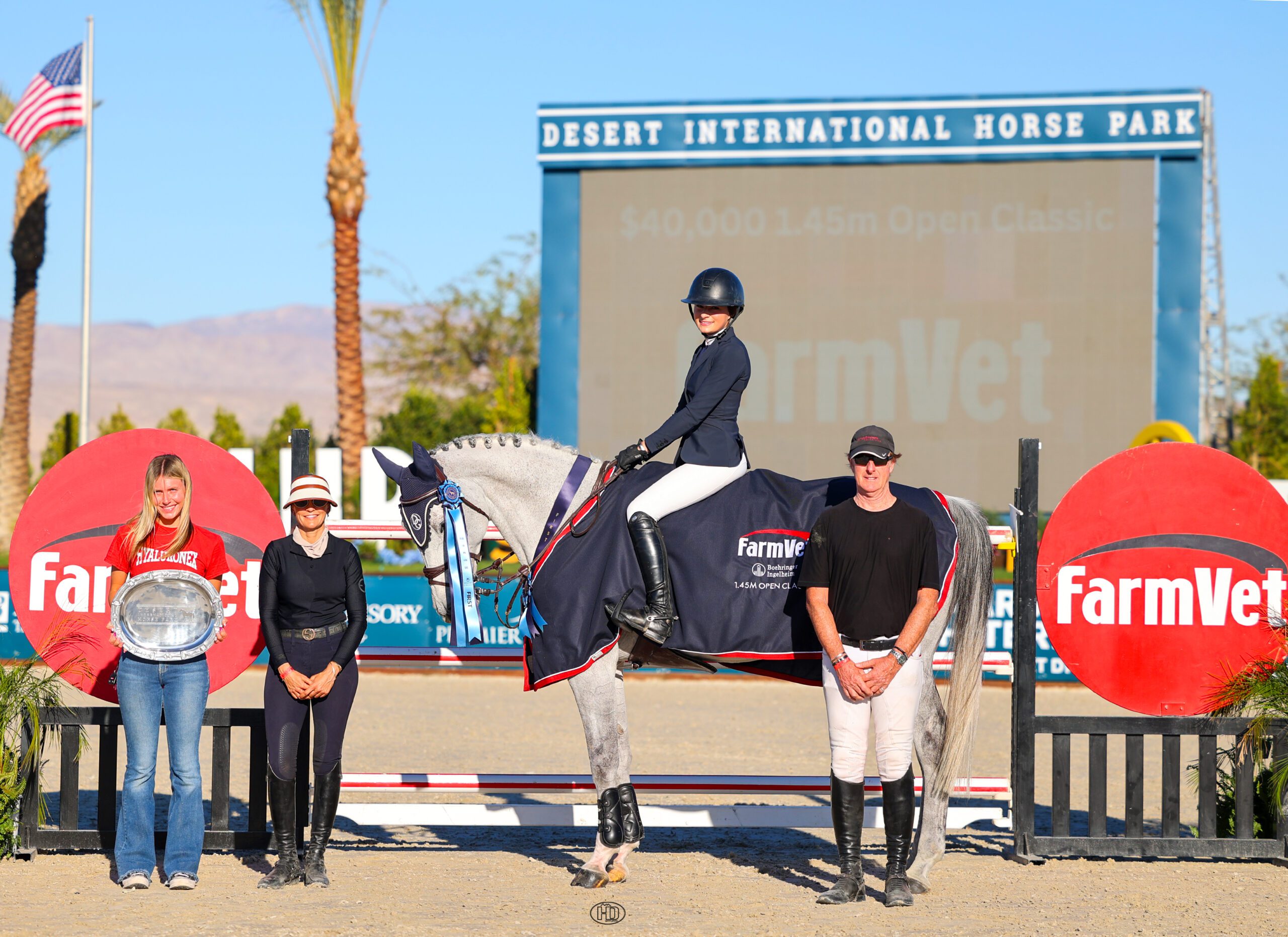 Thermal, CA – February 23, 2025 – Zoe Brown has found the FarmVet 1.45m Open Classic Series offered throughout Desert Circuit to be a place where Bling VD Duvelshoeve Z really excels, and that certainly proved to be the case on Sunday, February 23. Brown and “Bling” topped a field of 39 entries to ride away with the win in the $40,000 FarmVet 1.45m Open Classic, held during Desert Circuit 7 at the Desert International Horse Park.